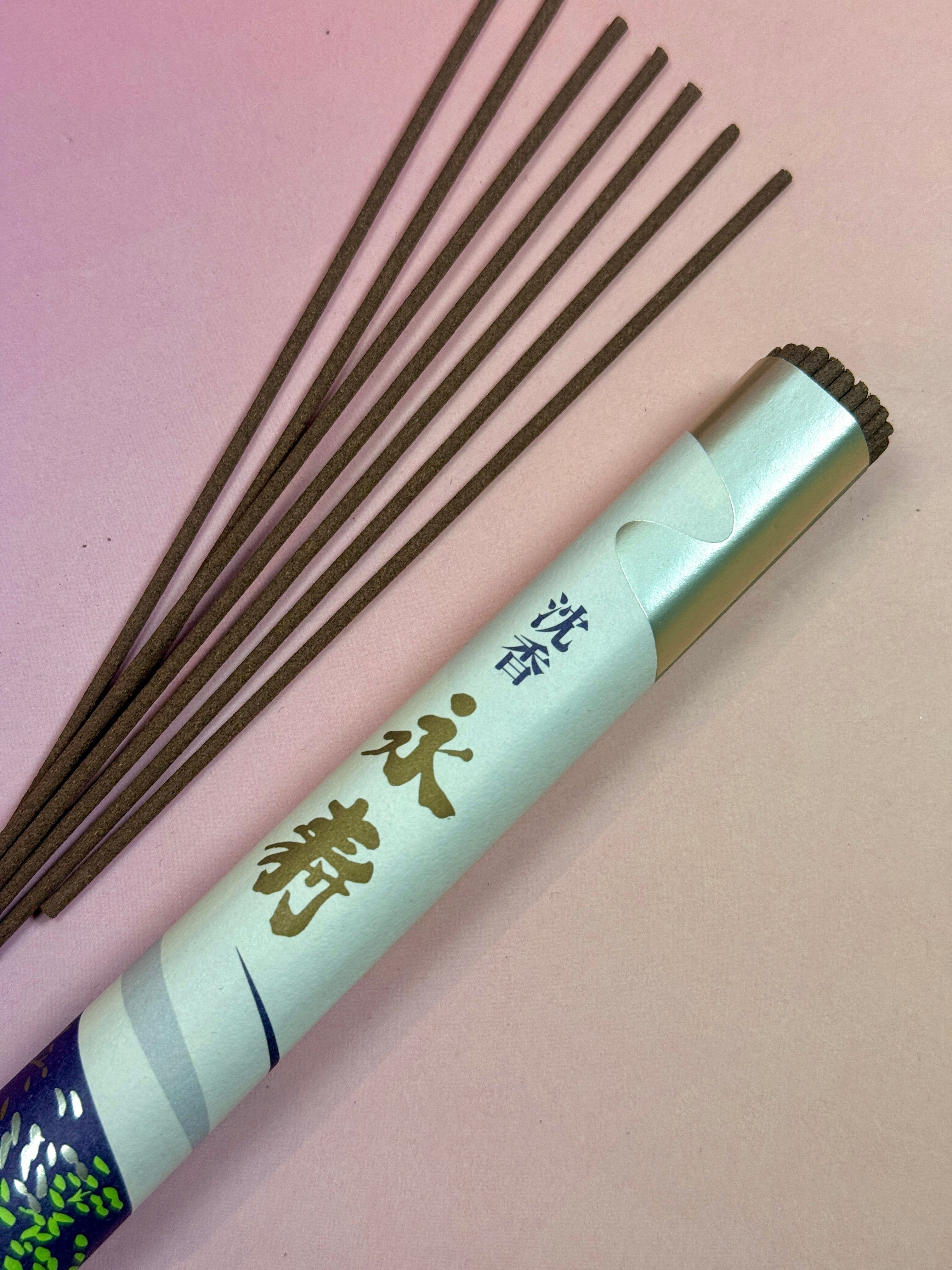 About the scent: This incense features a bold, captivating aroma of aloeswood and sandalwood, lifted by a subtle hint of spicy patchouli. Since ancient times, aloeswood has been one of the most treasured of all incense materials. In Japan, it is known as Jinkoh, meaning “the wood that sinks in water” a reference to its richness in aromatic resin, so dense that it sinks rather than floats. The result is an exquisite, mystical, and enchanting fragrance that fills any space with depth, warmth, and timeless elegance.