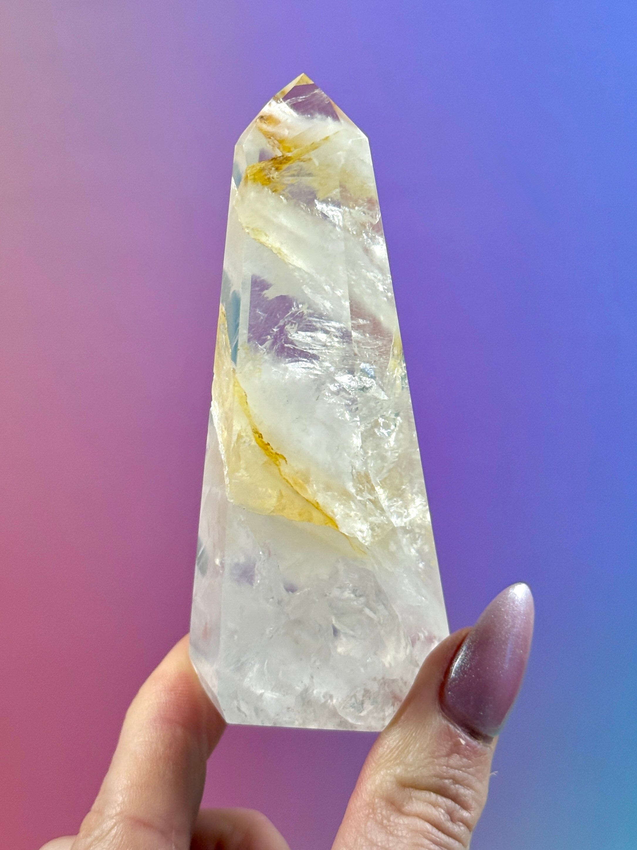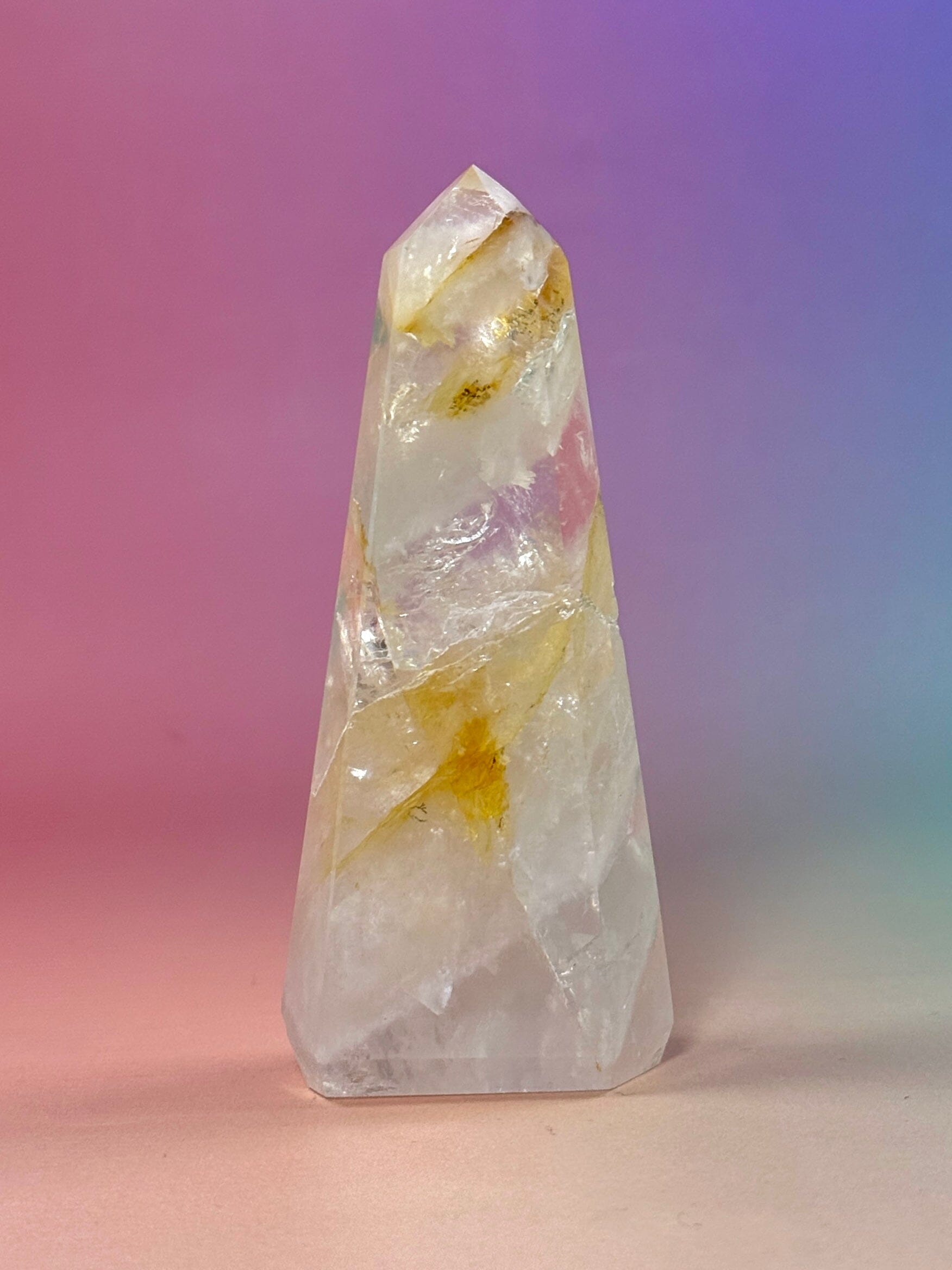 Golden Healer Quartz Tower! A high-vibration crystal and a master healer, just like Gold. This tower will raise your vibrations, amplify your intentions, and release any blockages in your body and in your life.