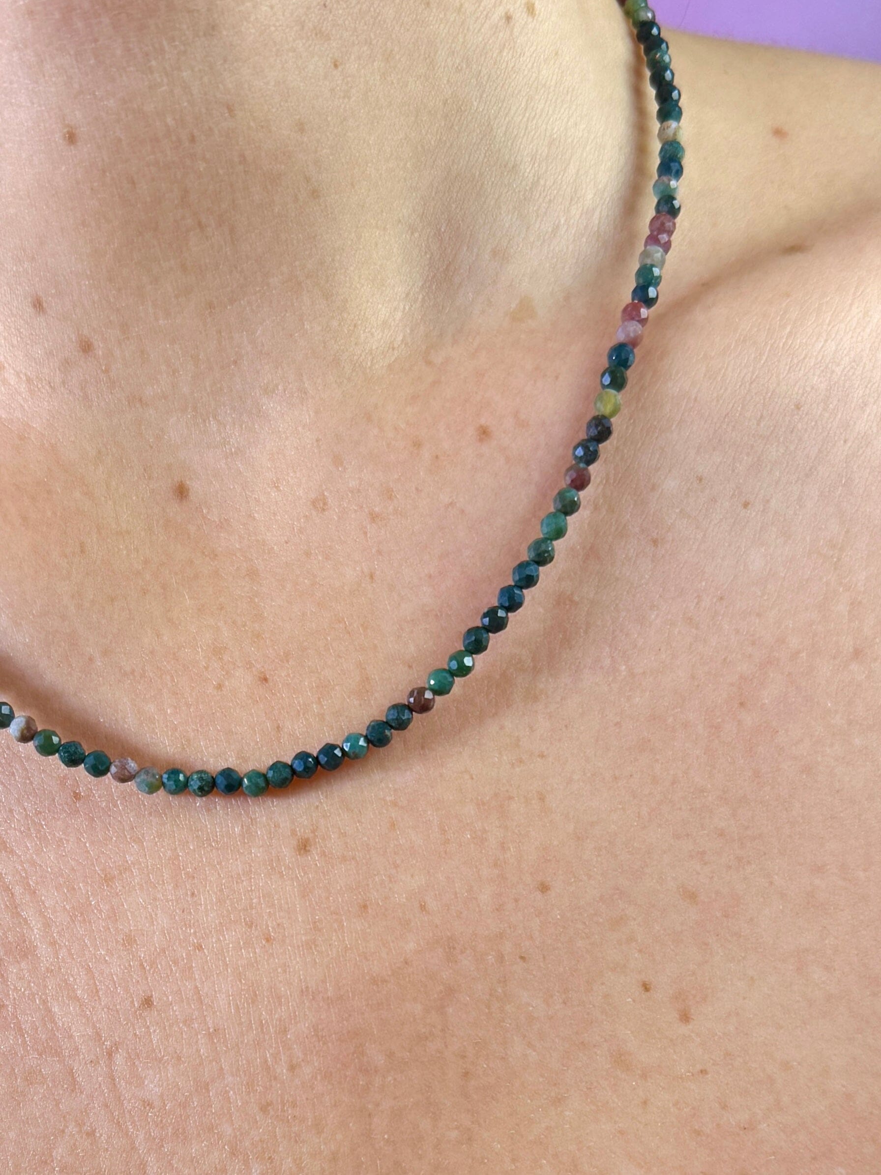 Bloodstone facet crystal choker necklace. Available in 2 bead sizes.