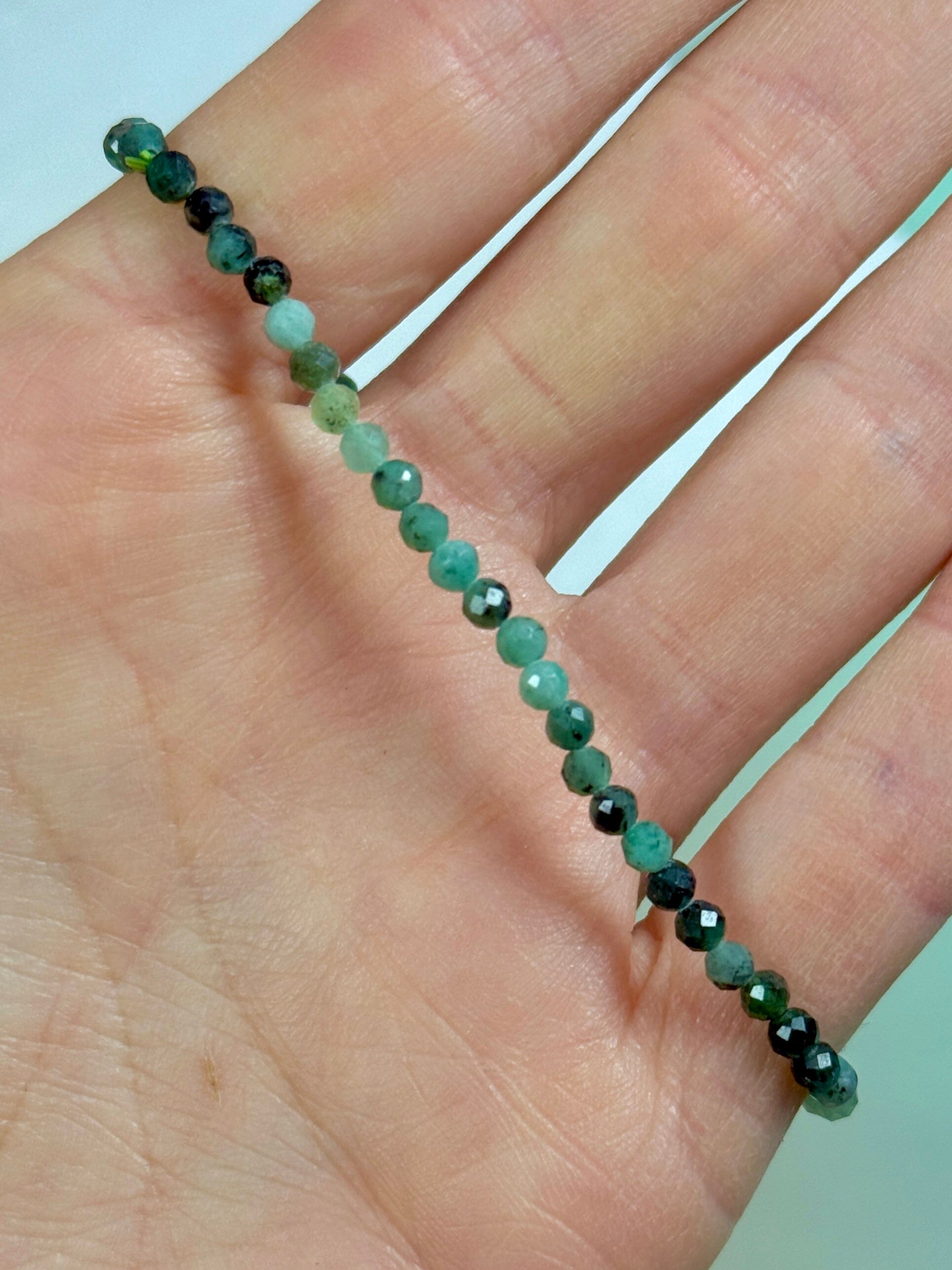 Emerald Facet crystal bracelet with 3 or 4mm beads.