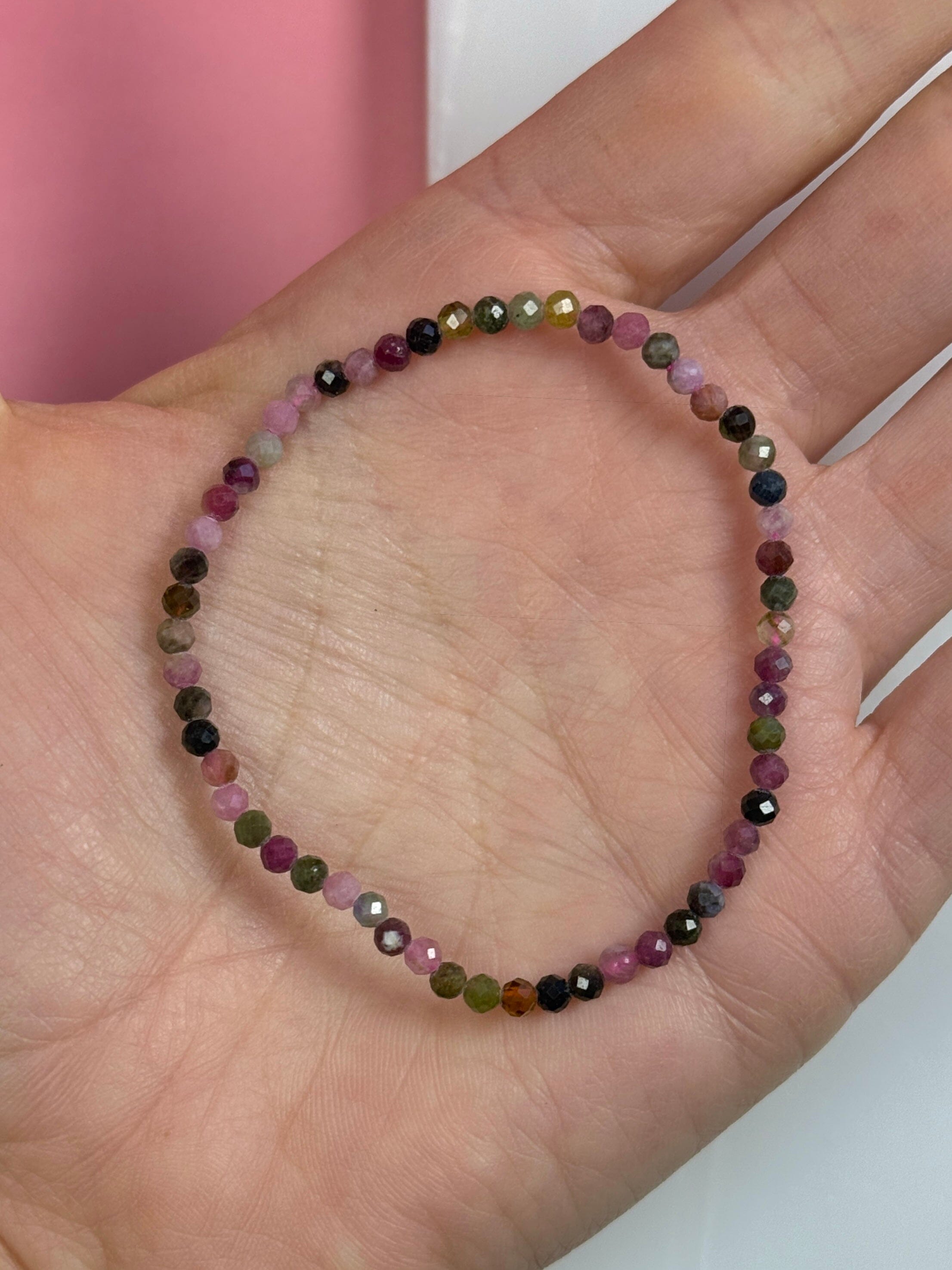 Rainbow Tourmaline Facet crystal bracelet with 3 or 4mm beads.