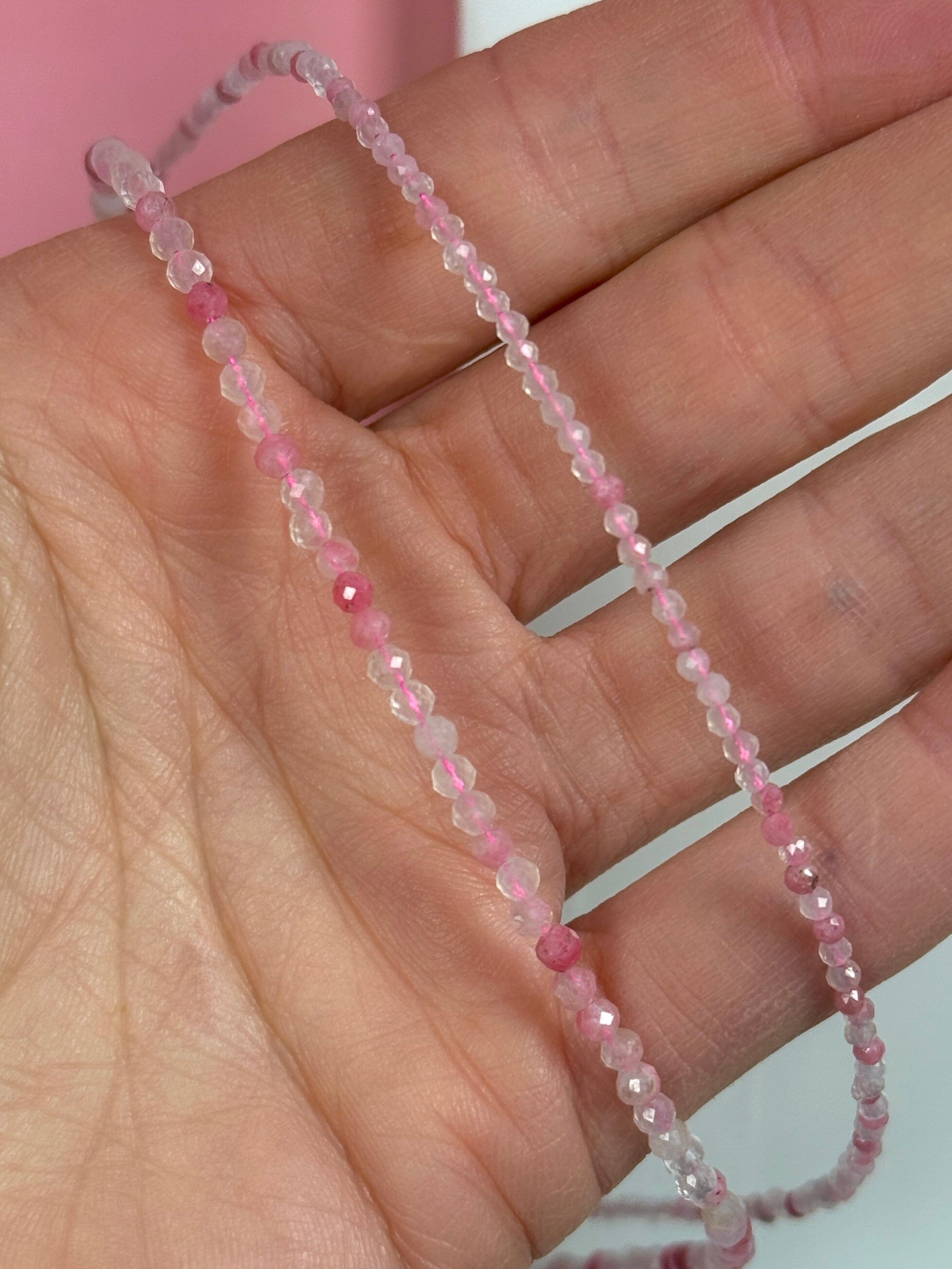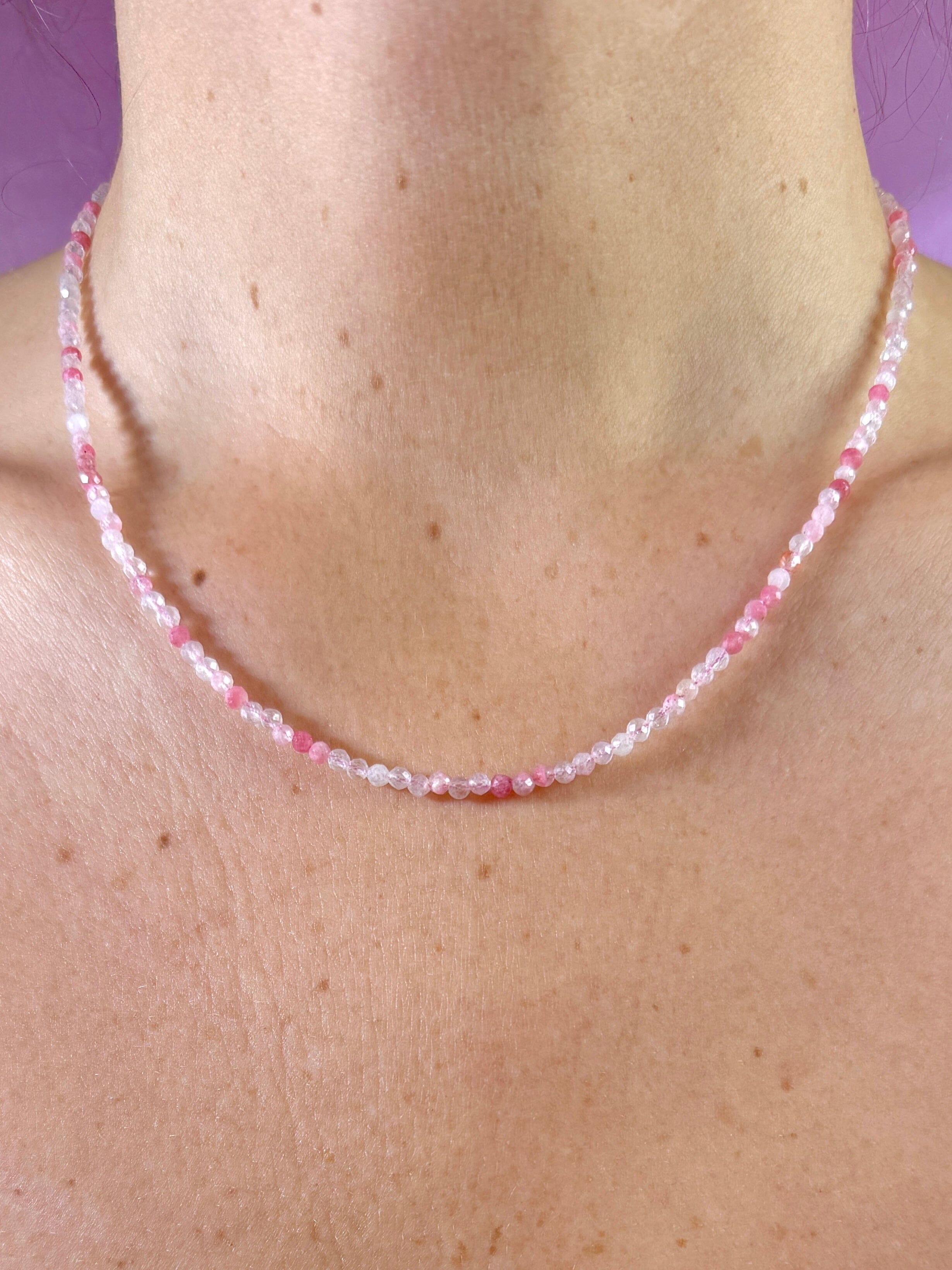 RHODONITE + ROSE QUARTZ FACET CHOKER NECKLACE