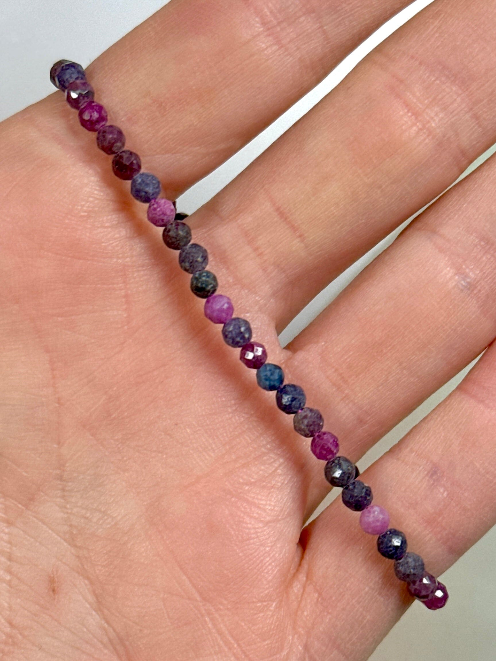 Ruby Sapphire Facet crystal bracelet with 3mm beads.