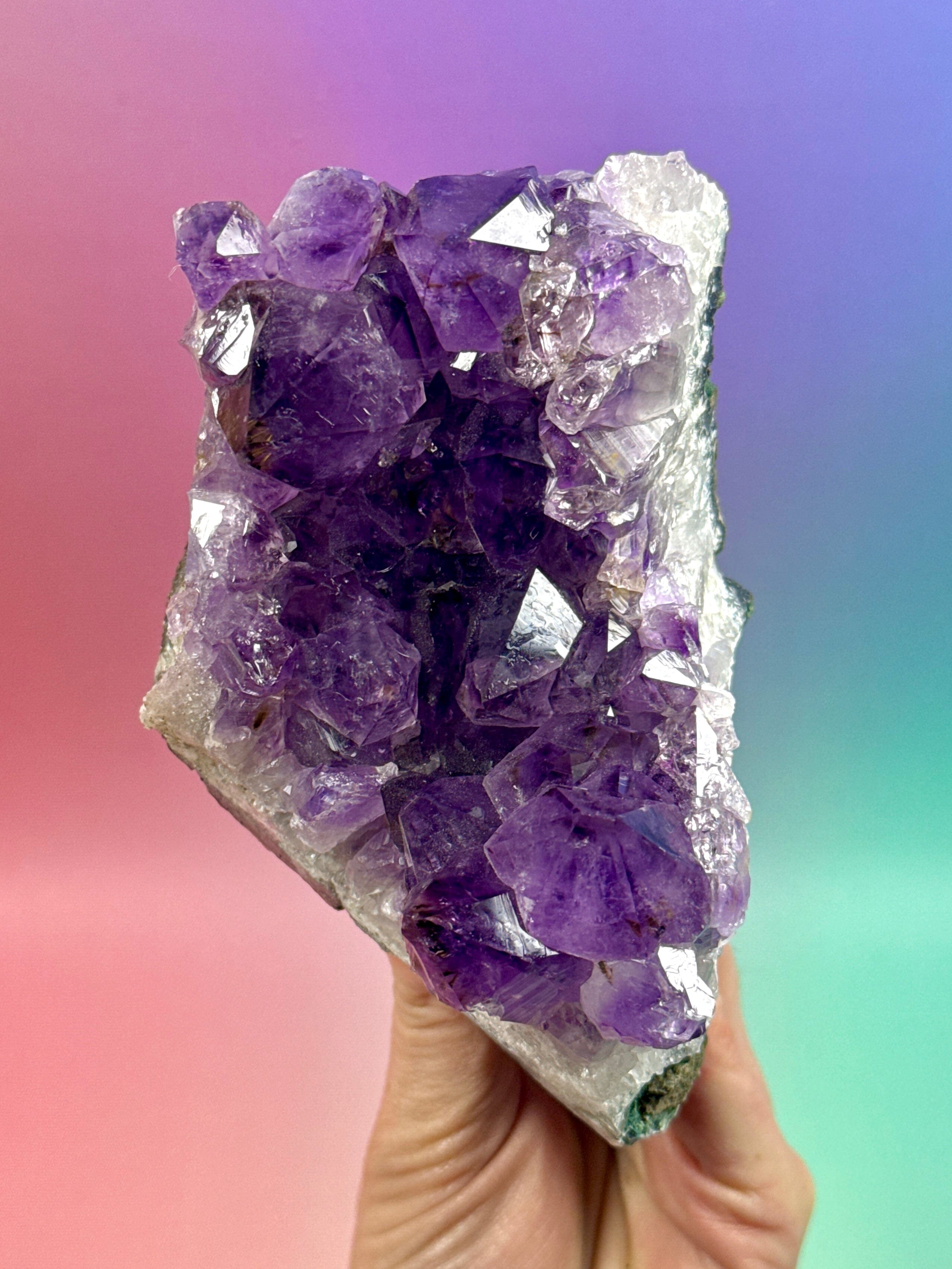 Amethyst is a stone of spirituality and protection, known for its abilities to still the mind and inspire an enhanced meditative state. Its high frequency purifies the aura of any negative energy and creates a protective shield of light around the body. Amethyst can be used as a dream stone to help better sleep. Place your Amethyst in your bedroom or under your pillow for better sleep.
