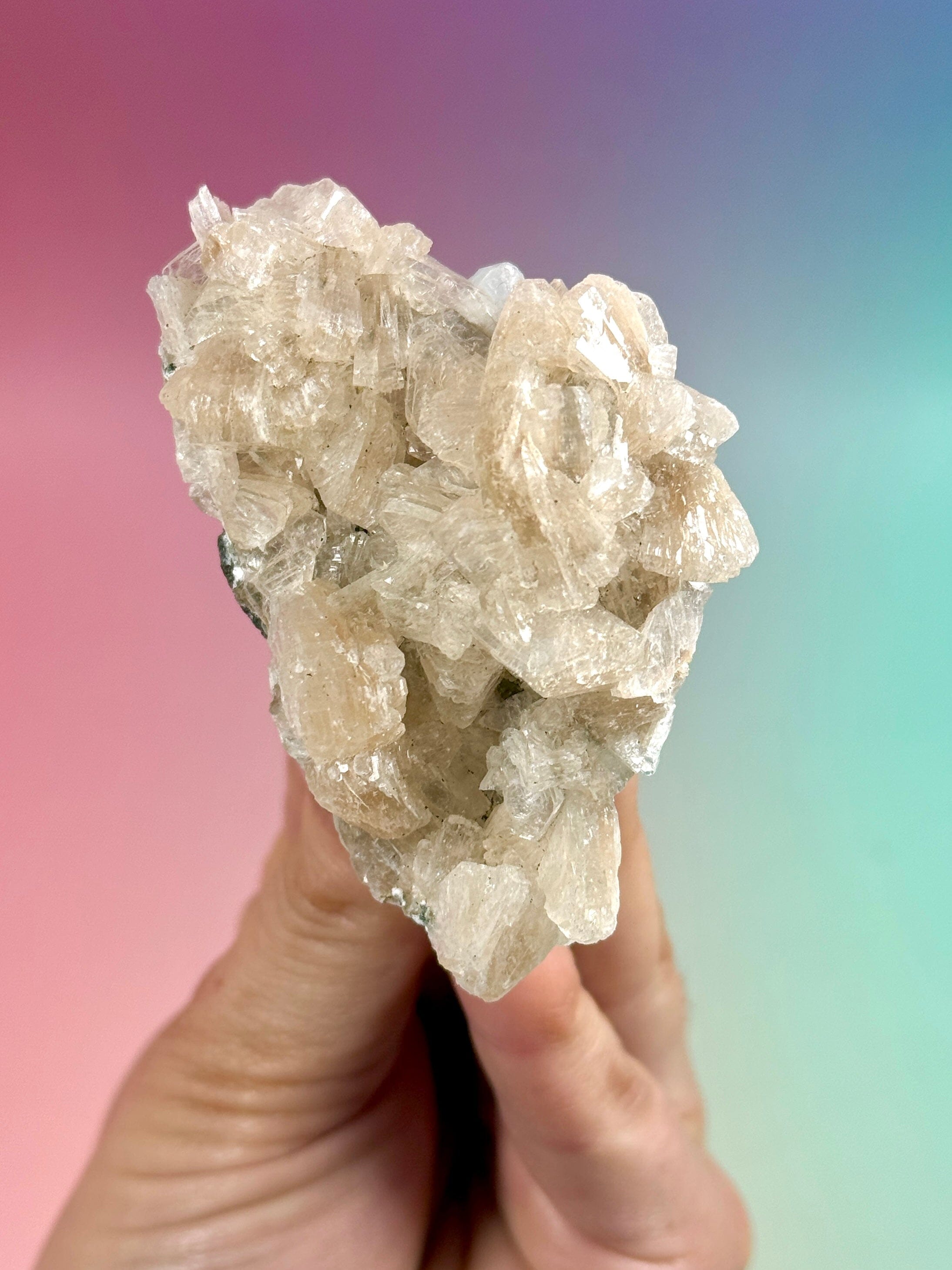 Heulandite is a gentle yet powerfully transformative crystal known for its ability to open the heart, strengthen intuition, and bring deep emotional clarity. Its soft, uplifting vibration helps dissolve mental tension and supports a calm, receptive state — ideal for meditation, healing work, and spiritual exploration.