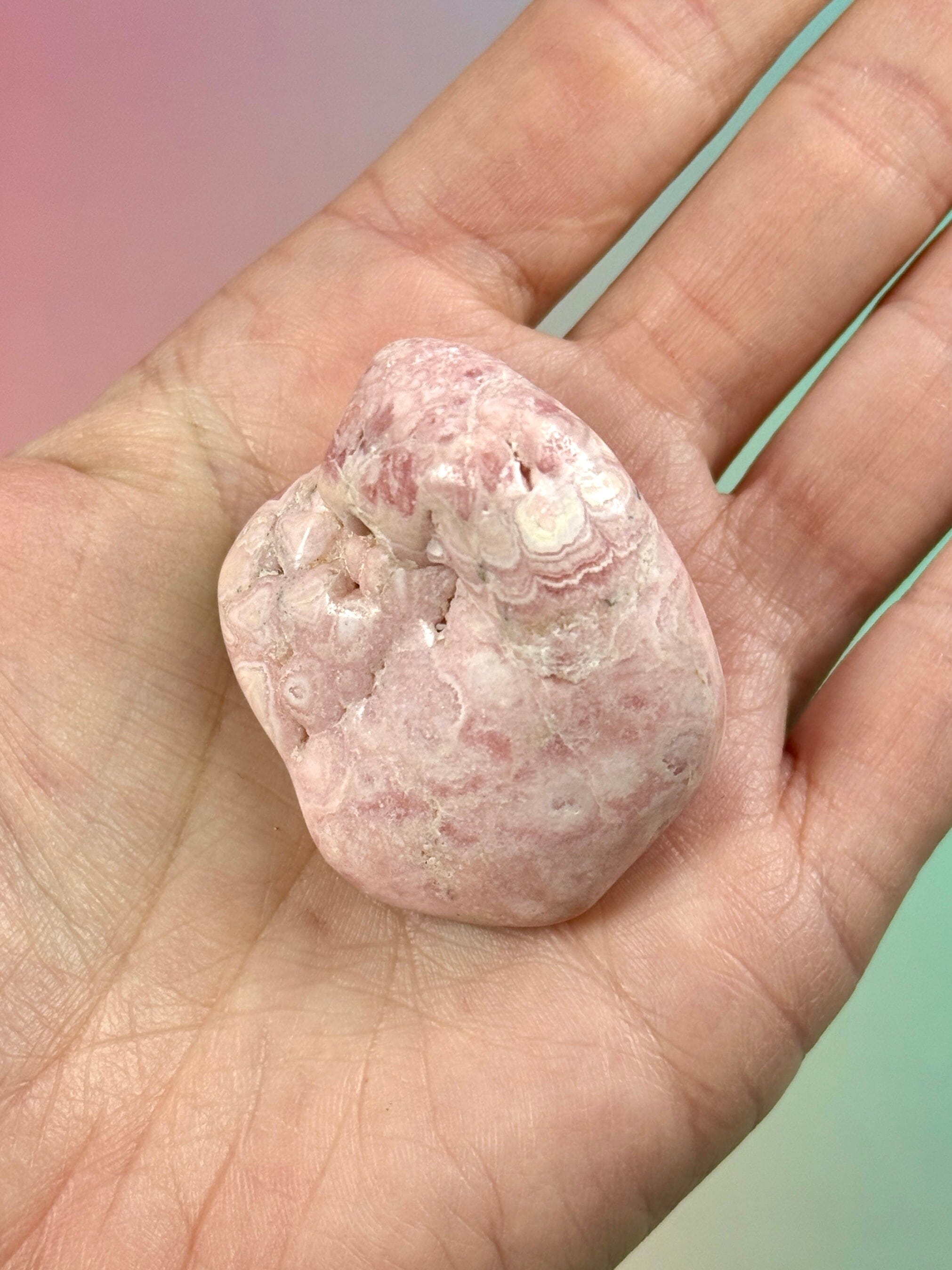 Rhodochrosite evokes the vibration of Divine Love. It invites our soul and heart to be courageous and compassionate, in alignment with whatever is true and good. Rhodochrosite encourages us to constantly lead with love, in each situation we encounter, and to respond accordingly. Rhodochrosite also reminds us that playing and laughing are important spiritual activities, which nourishes our soul. When we embrace life with love, joy and gratitude, we recognize deep in our hearts, that we are worthy of the light that so freely shines around on us.