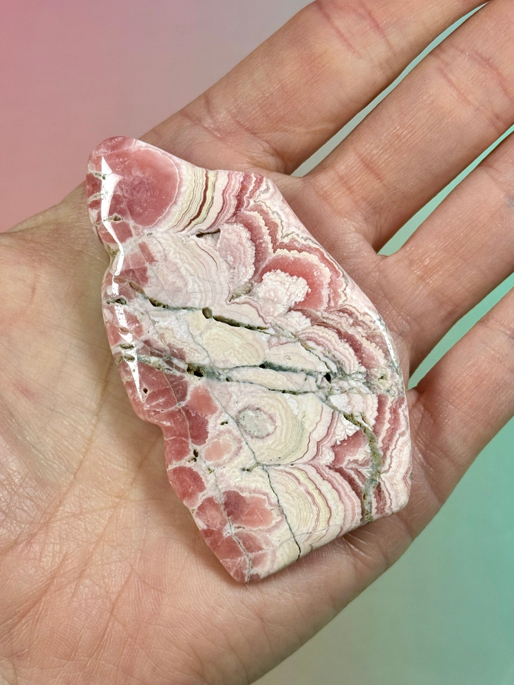 You will receive the Rhodochrosite shown.