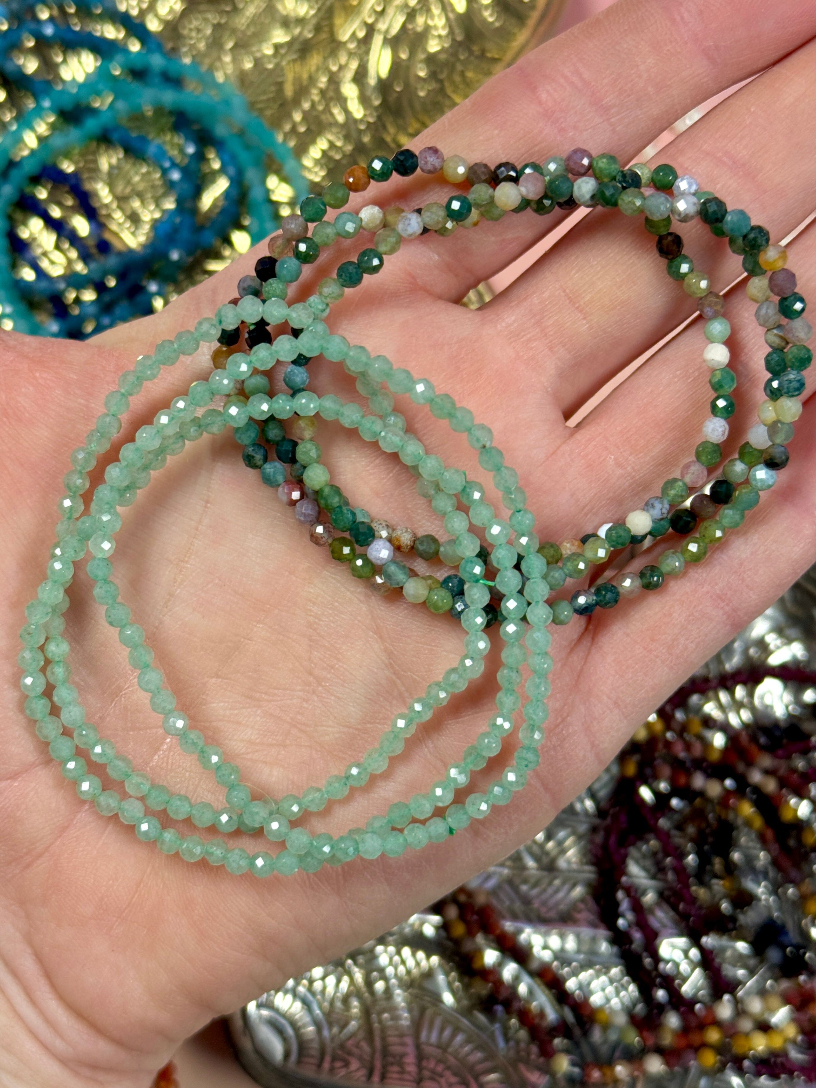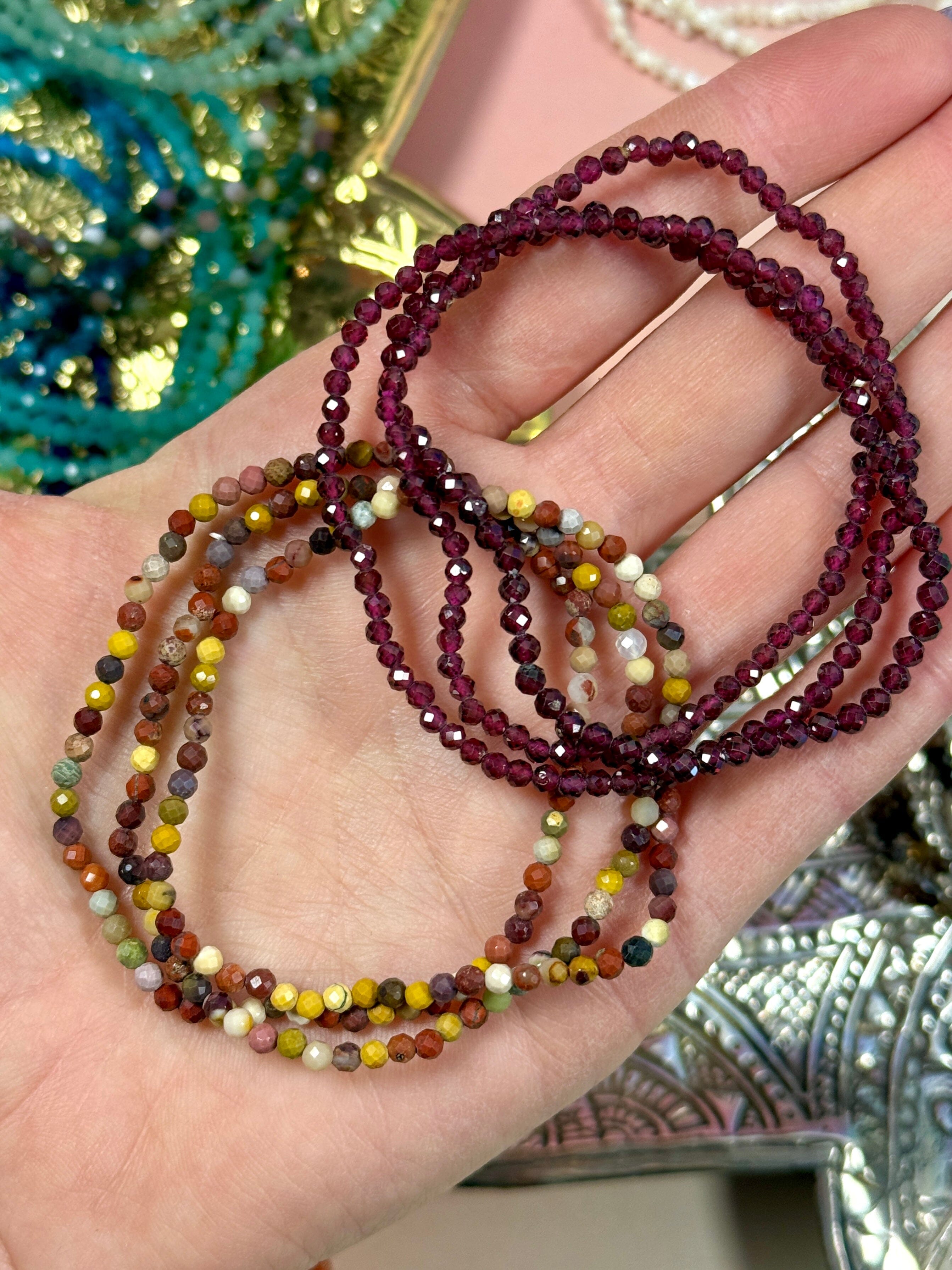 Available stones: Amazonite, Black Agate, Blue Apatite, Carnelian, Garnet, Green Aventurine, Lepidolite, Mookaite Jasper, Ocean Jasper, Sodalite, White Shellstone, Yellow Shellstone