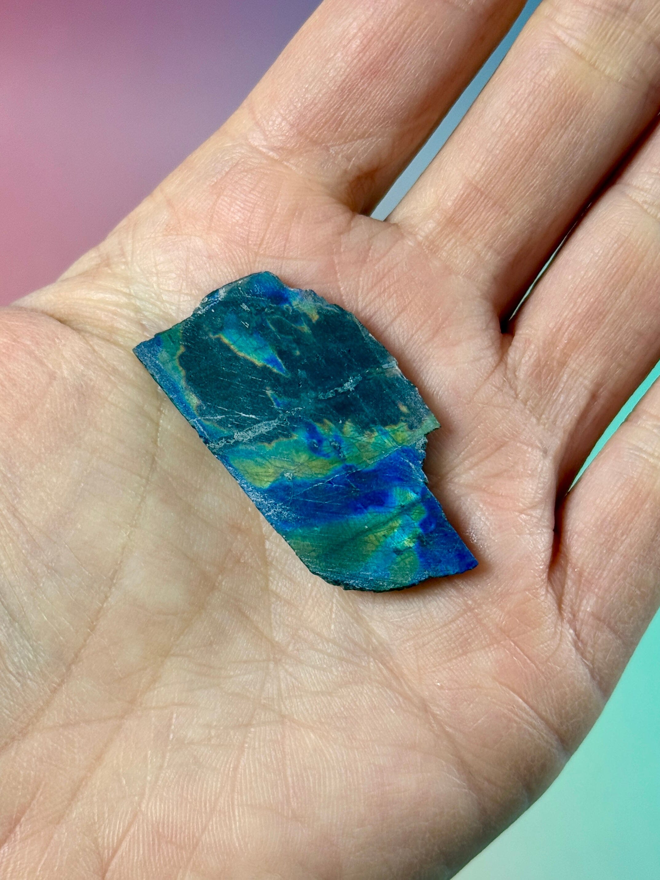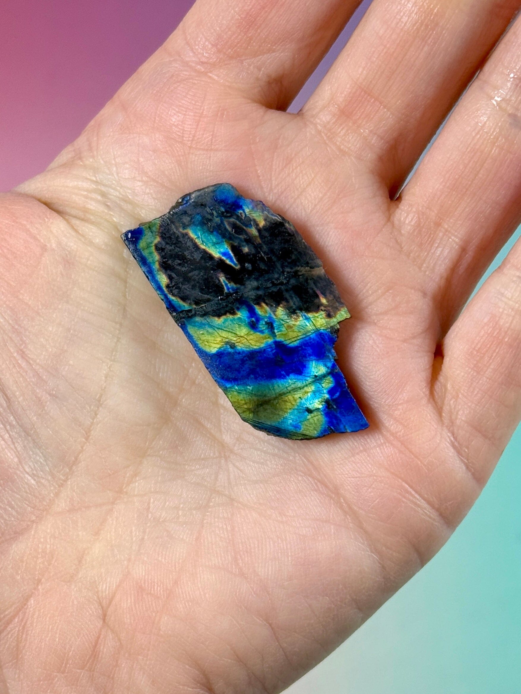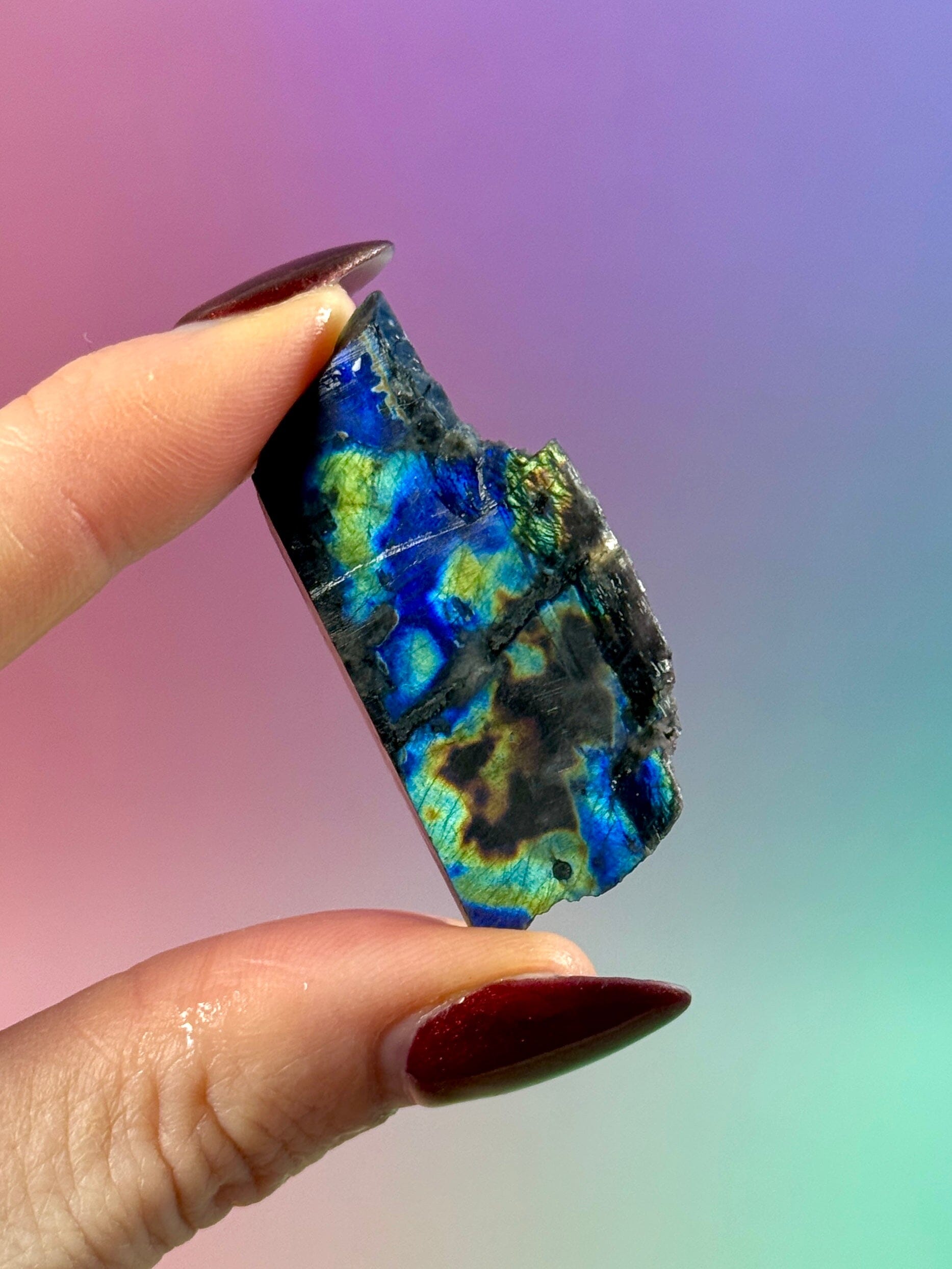 Spectrolite works strongly with the third eye, throat, and crown chakras, while its broad color spectrum allows it to harmonize multiple energy centers at once. It is often drawn to intuitive and sensitive individuals, as well as those engaged in spiritual or energetic work.