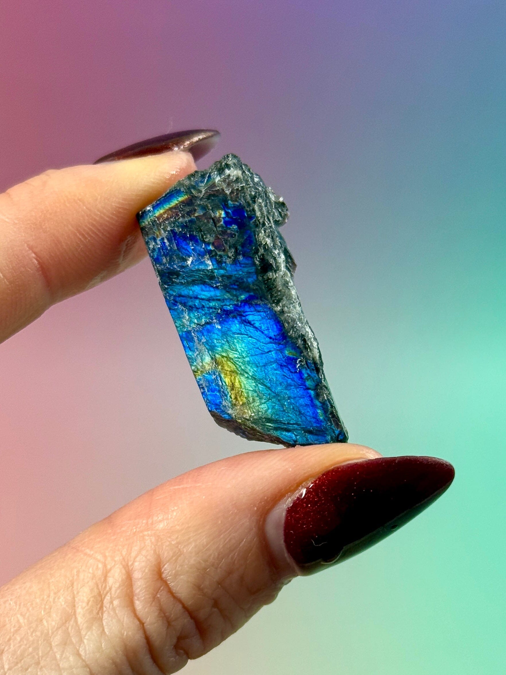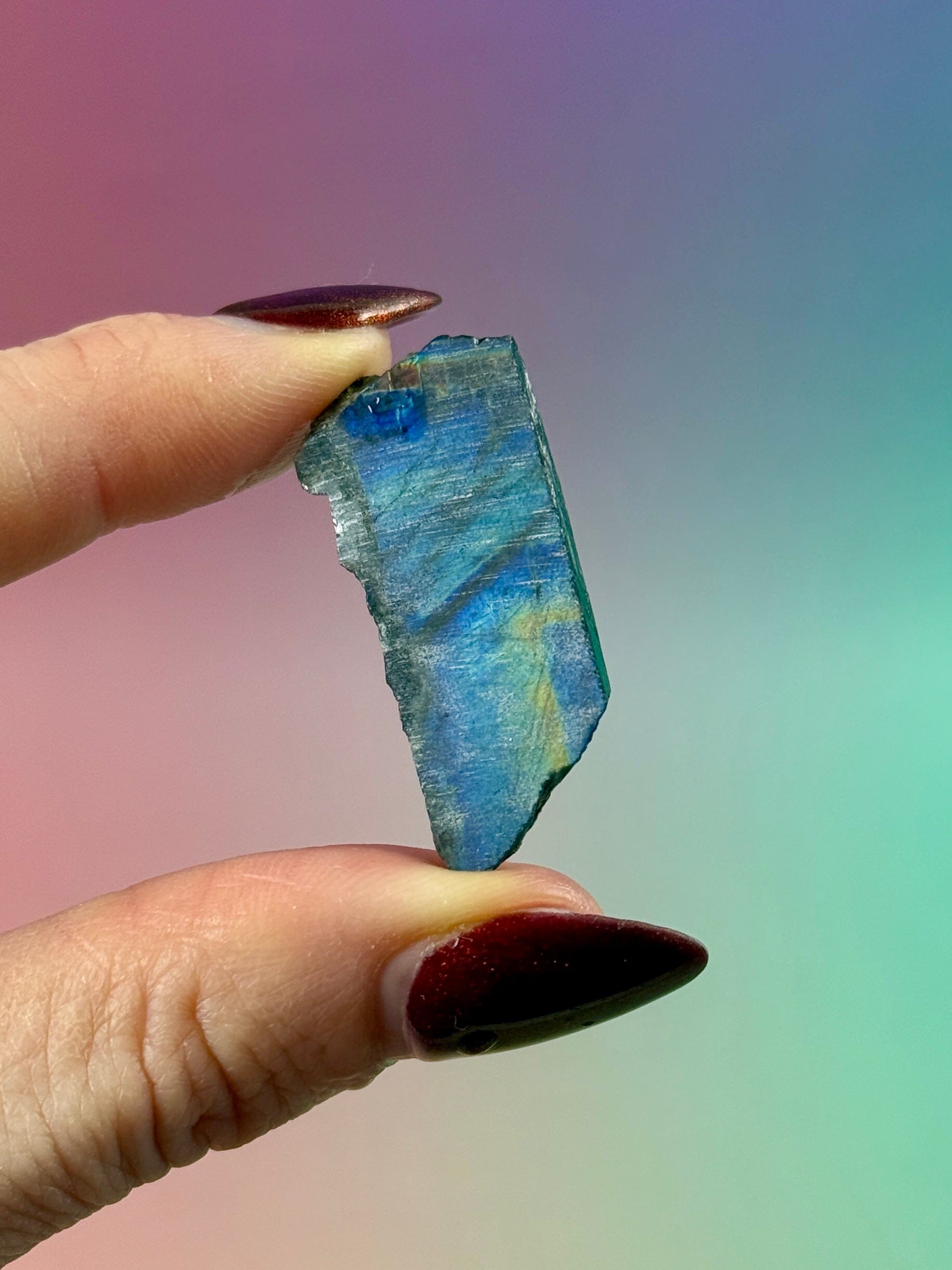 Spectrolite works strongly with the third eye, throat, and crown chakras, while its broad color spectrum allows it to harmonize multiple energy centers at once. It is often drawn to intuitive and sensitive individuals, as well as those engaged in spiritual or energetic work.