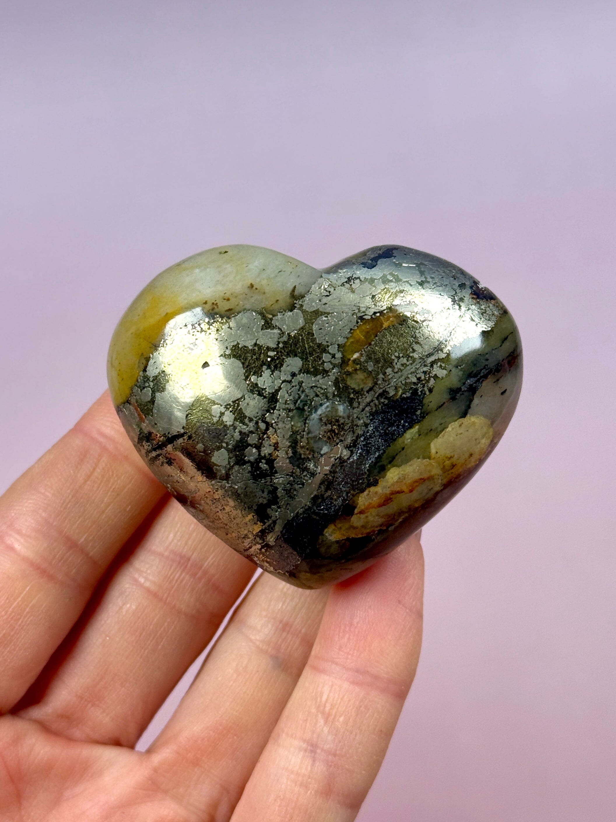 You will receive the Golden Healer Pyrite heart shown.