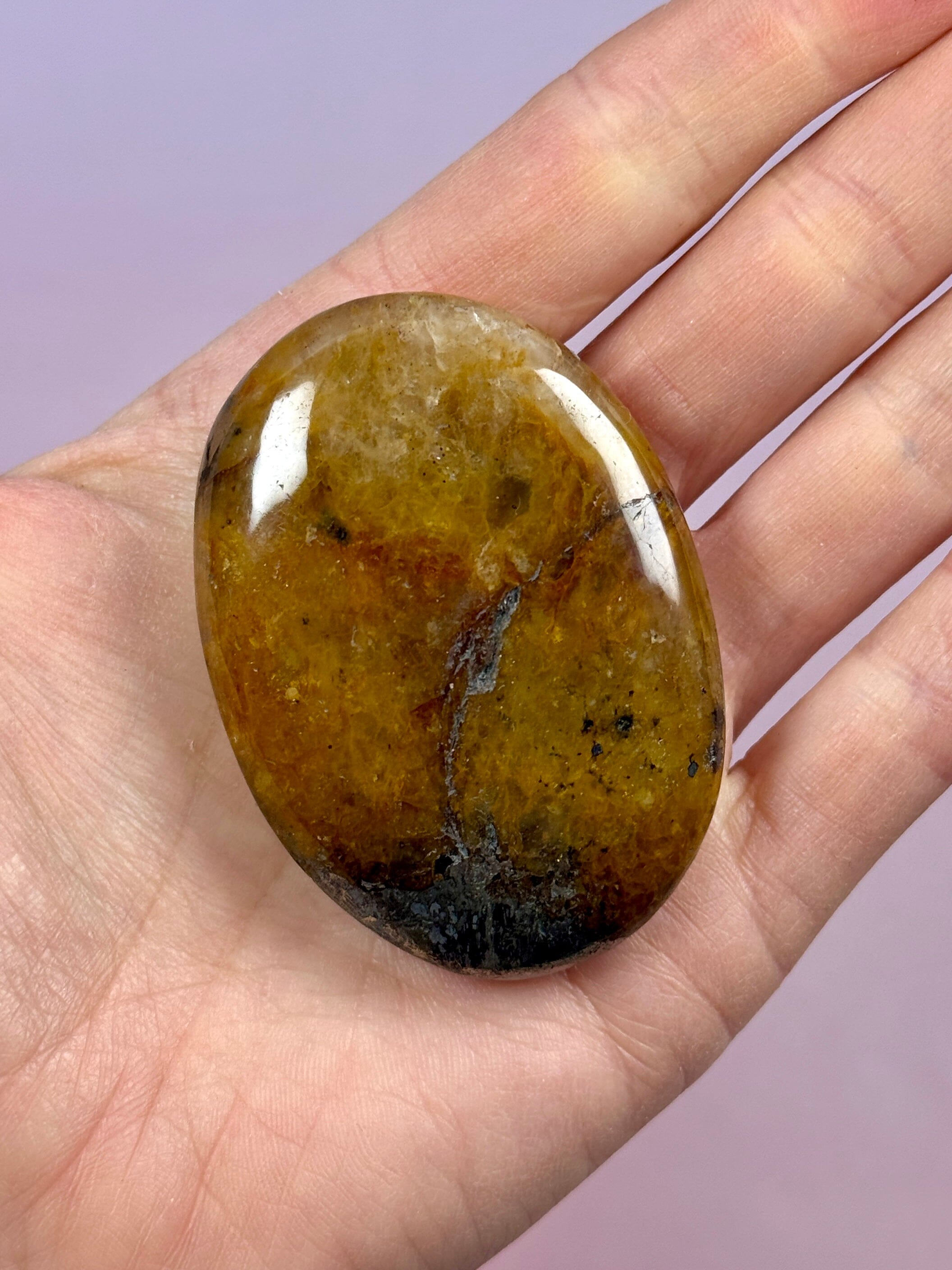 Pyrite is traditionally known as a stone of protection and strength. It helps shield the energy field from external influences and supports mental focus, determination and resilience. The golden healer energy adds a softer, harmonizing quality, working to balance the solar plexus and promote a steady flow of life force energy throughout the body.