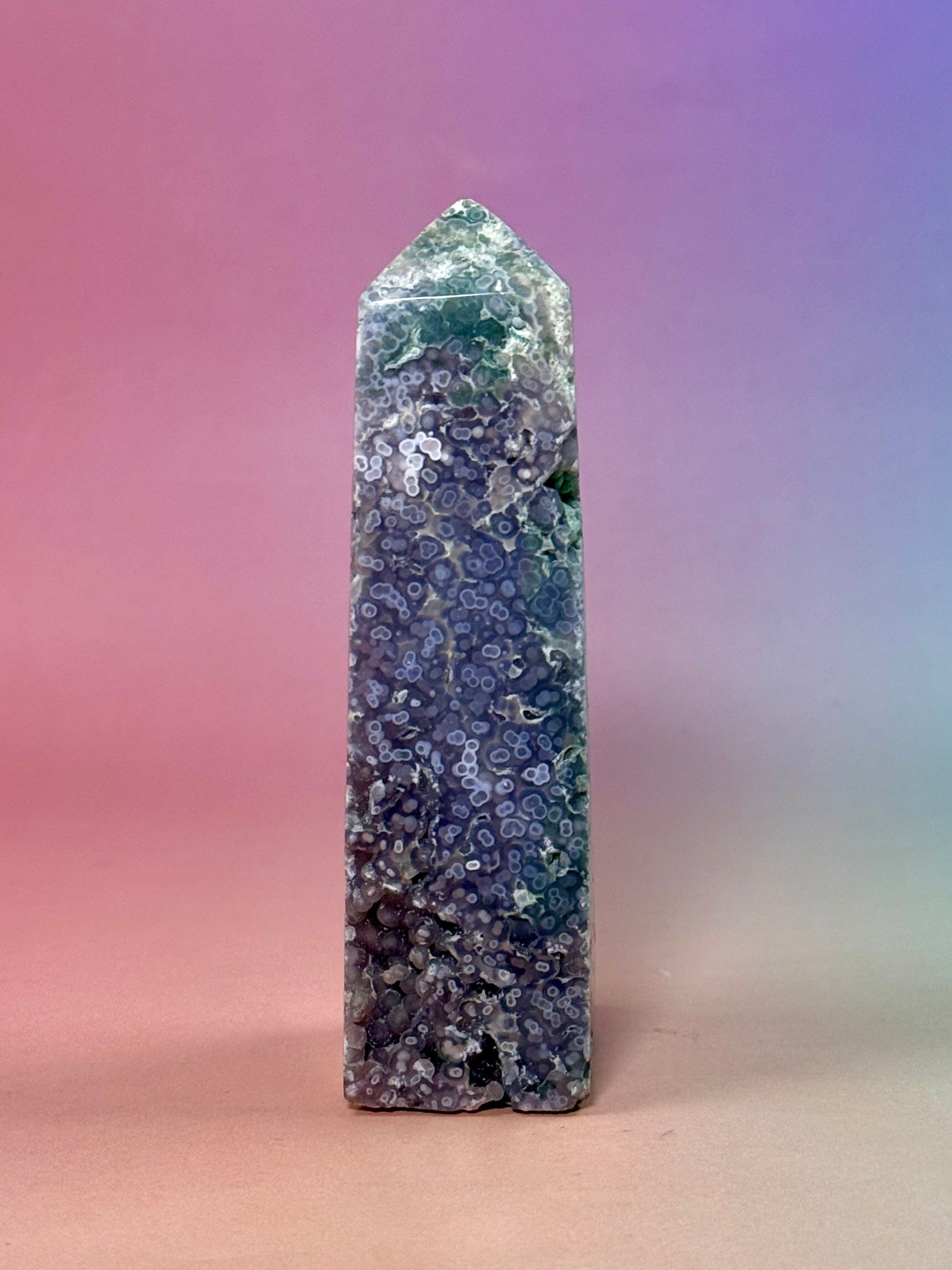 Grape Agate activates and links the crown and third eye chakras together. It is a powerful intuitive stone that helps activate psychic abilities and assists in the understanding of dreams. Grape Agate holds a tranquil and gentle energy. It promotes inner stability, composure, and maturity. Its warm and protective properties encourage security and self-confidence. It allows for deep and intense levels of meditation in a short period of time.
