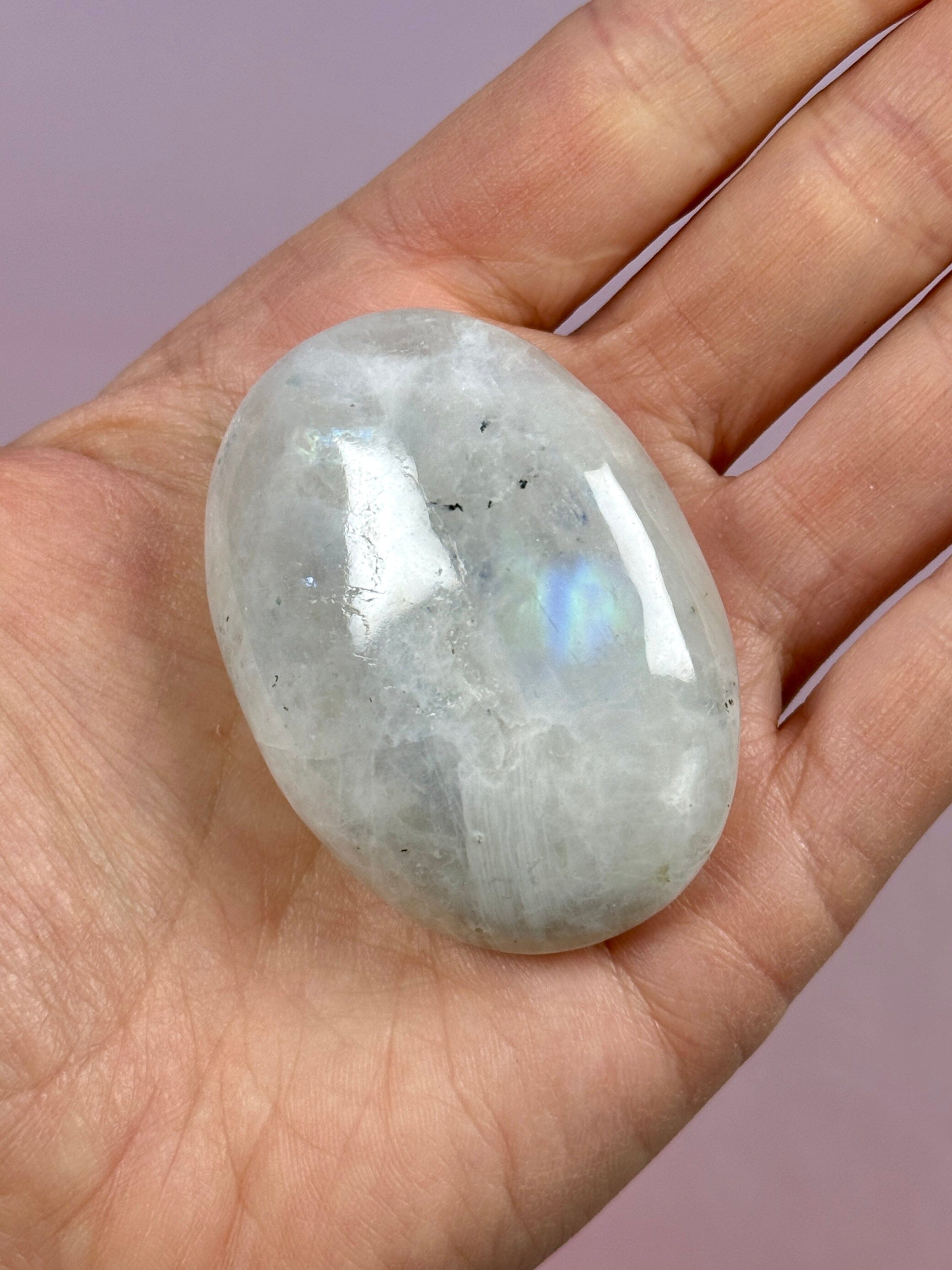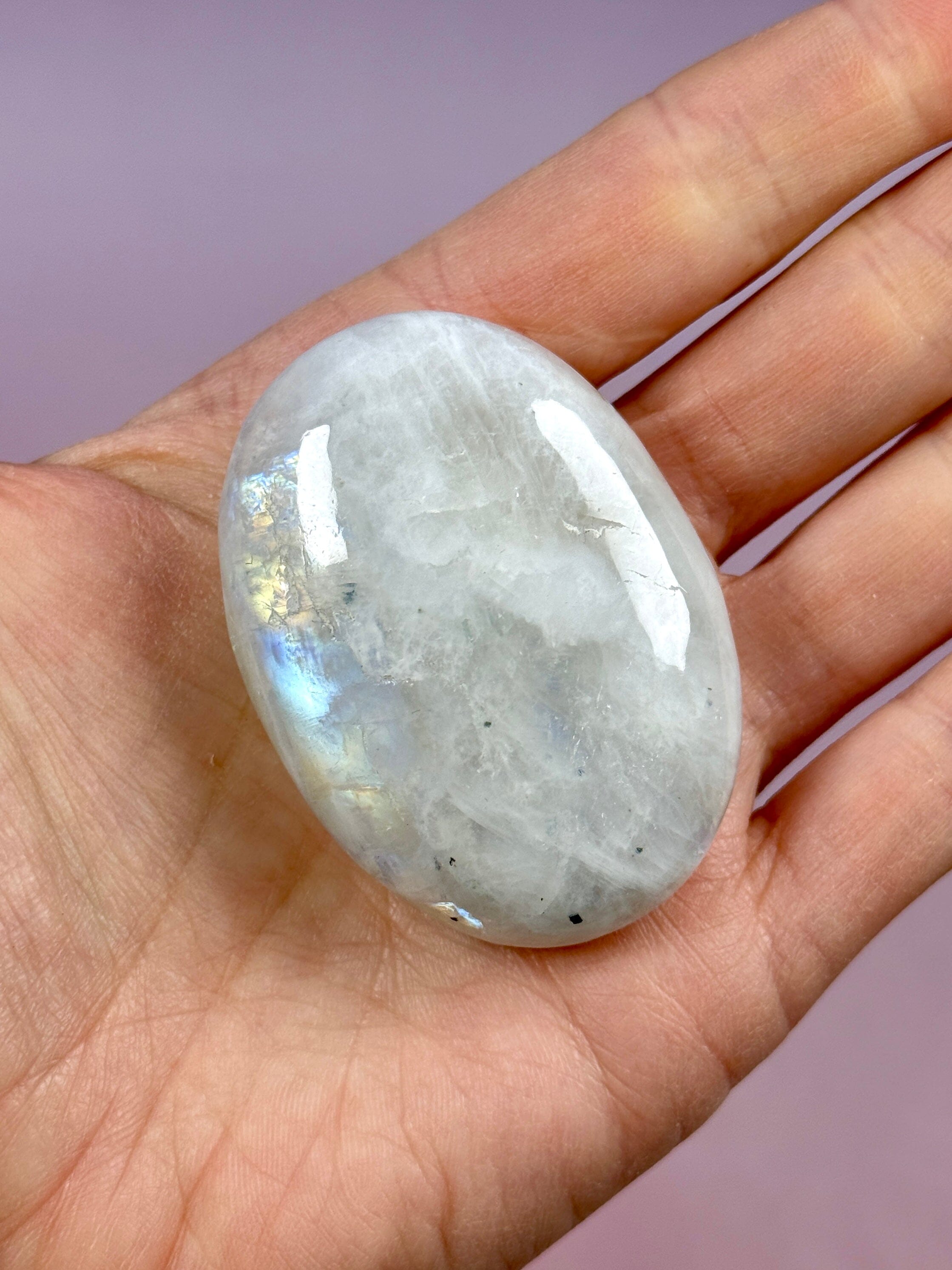 Rainbow Moonstone Palm stone with beautiful rainbow flashes!