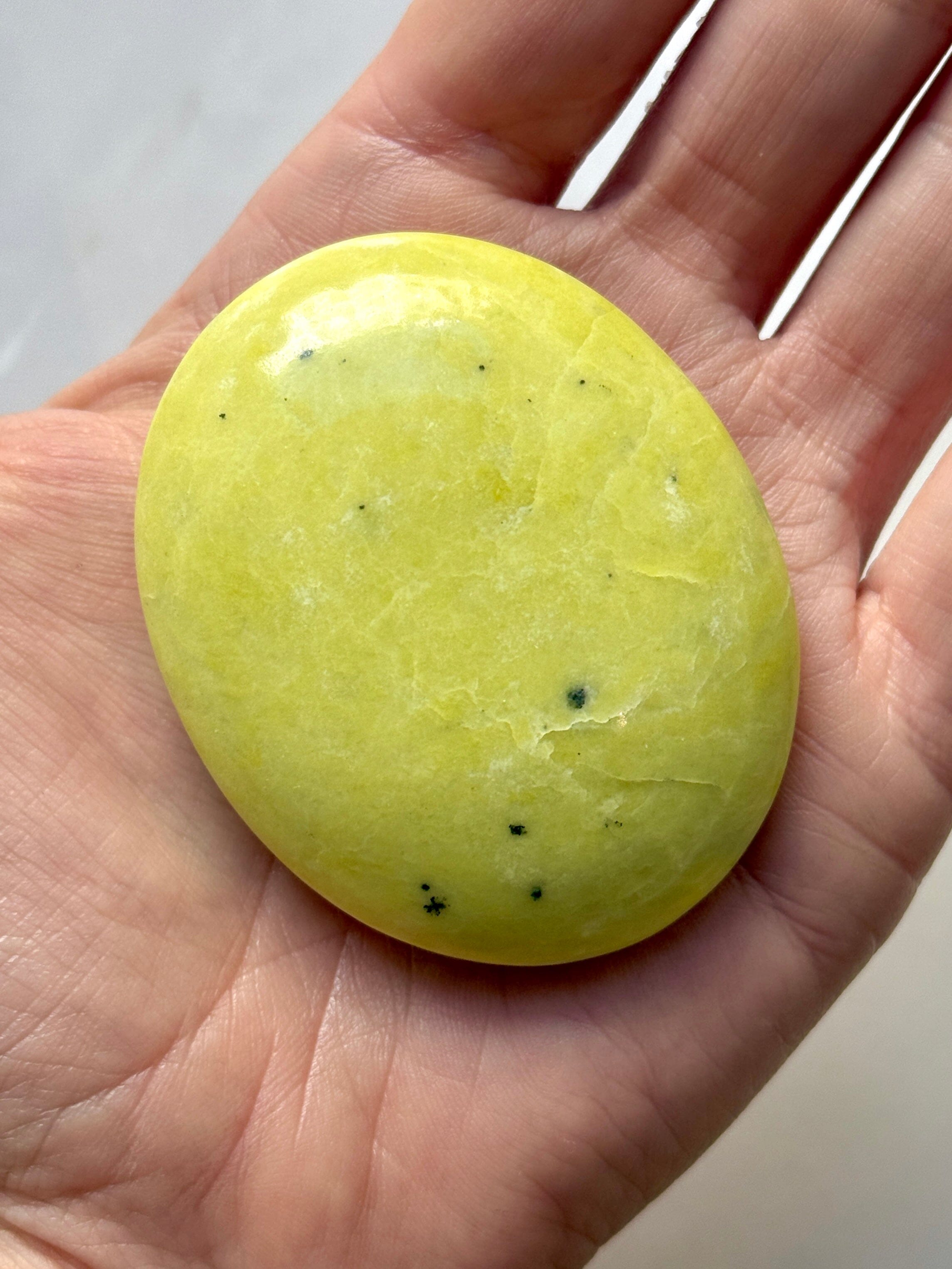 Lime Serpentine Palm stone in a beautiful lime green color.