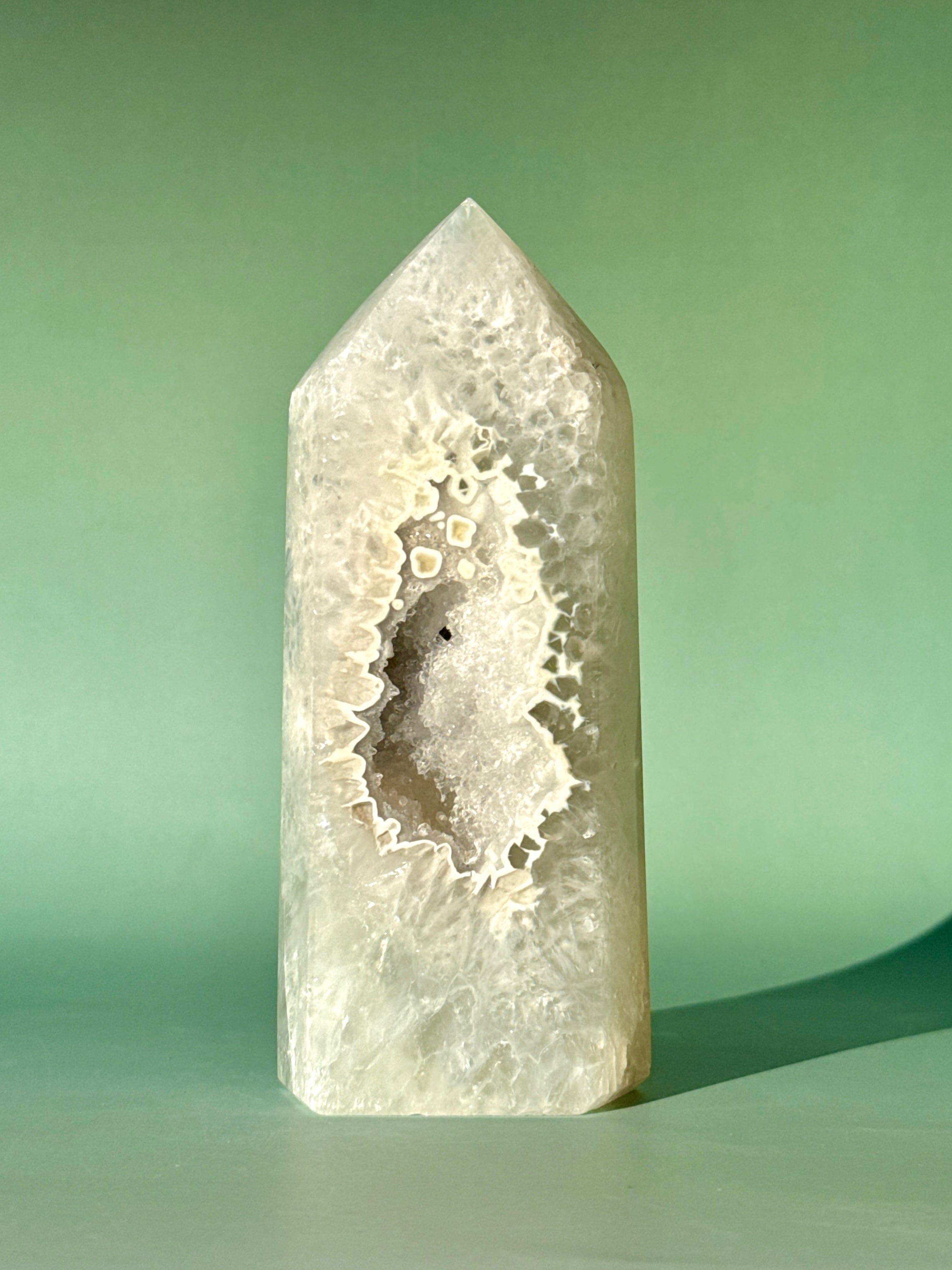 You will receive the Druzy Agate Tower on the picture.