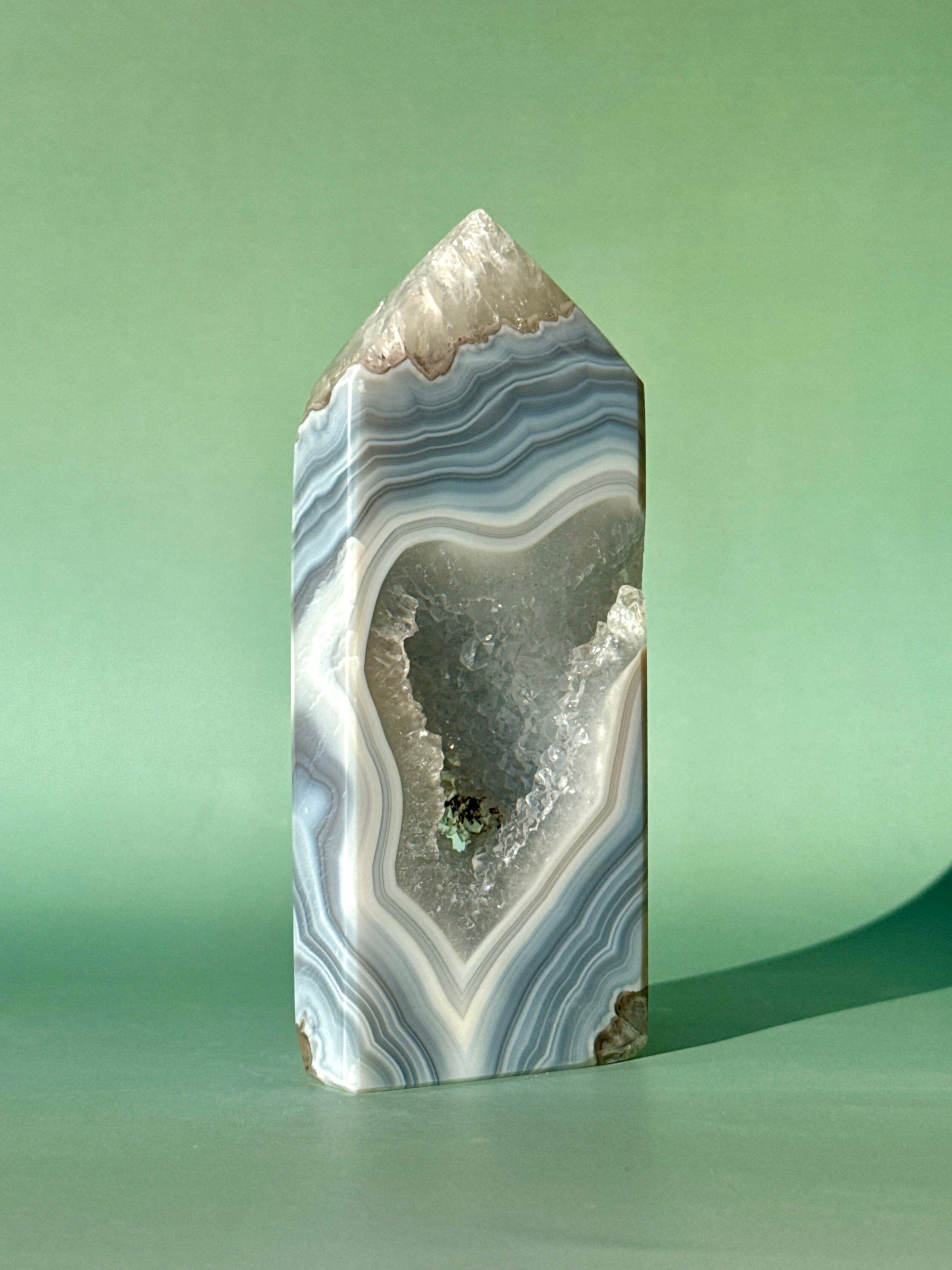 Druzy Agate tower in extra high quality from Brazil. This fascinating glittery crystal represents the divine beauty of Mother Earth.
