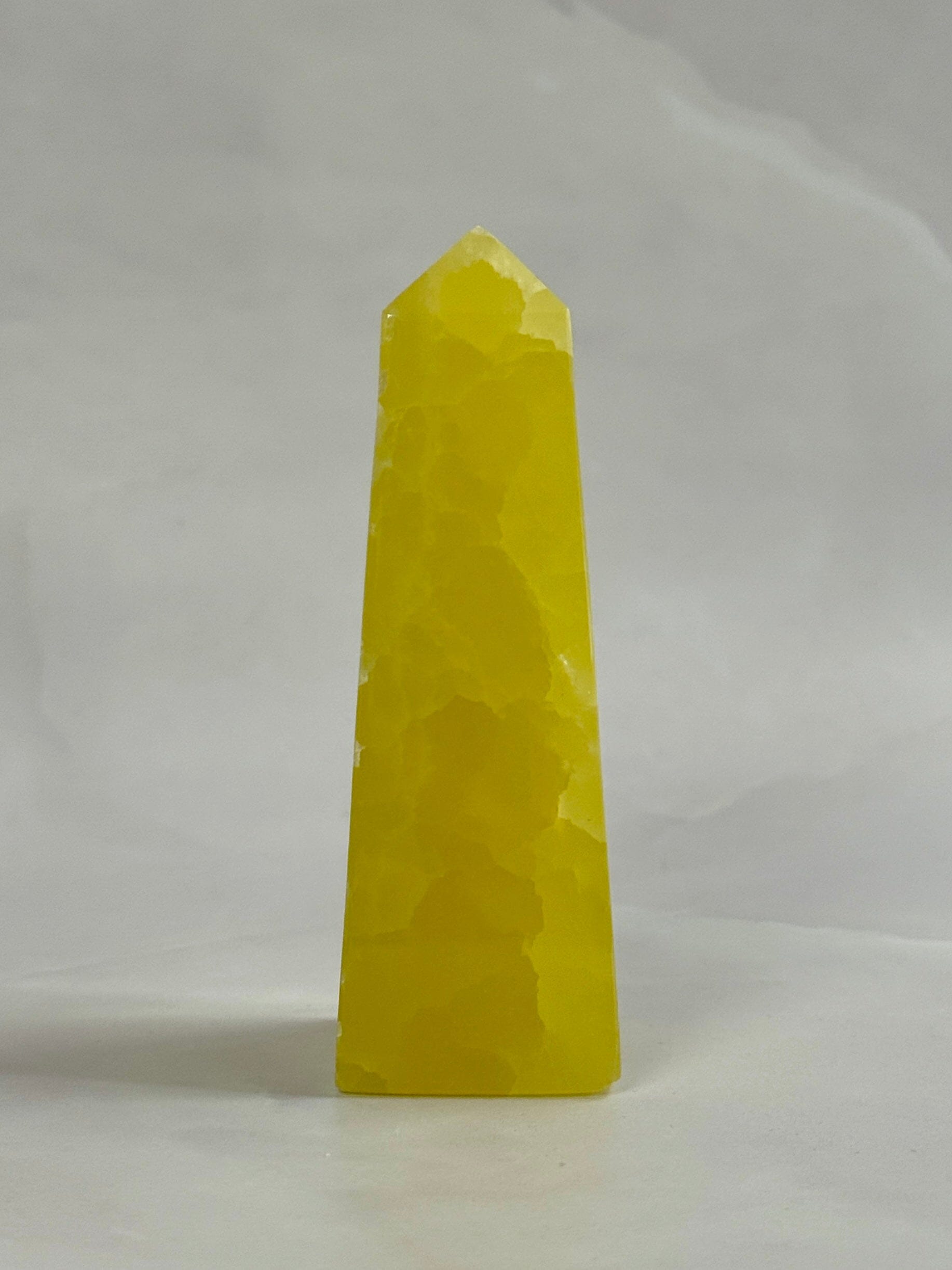 Lemon Calcit bringer solens kraftfulde energi. Her i et smukt tårn, til at forstærke energien.