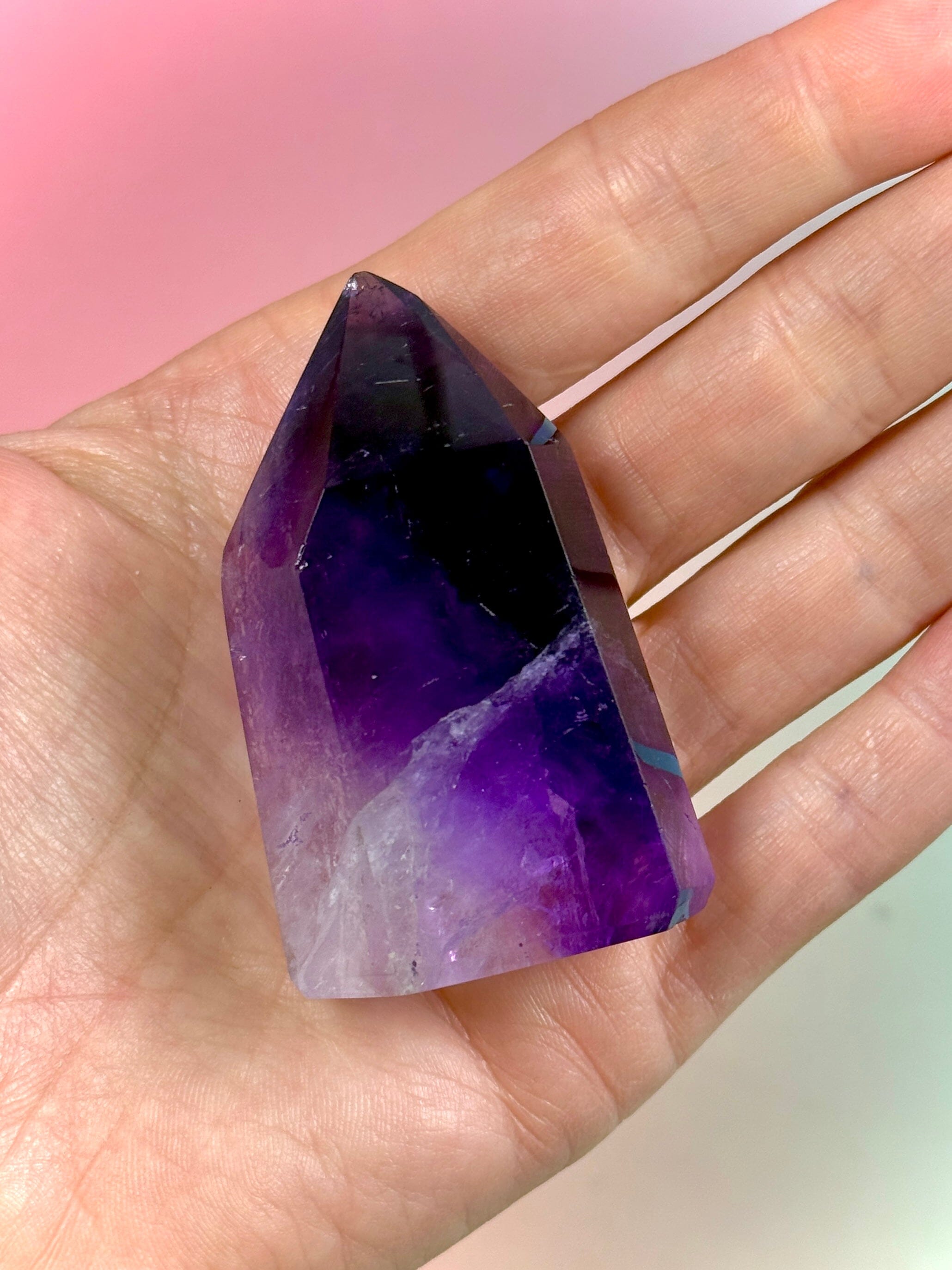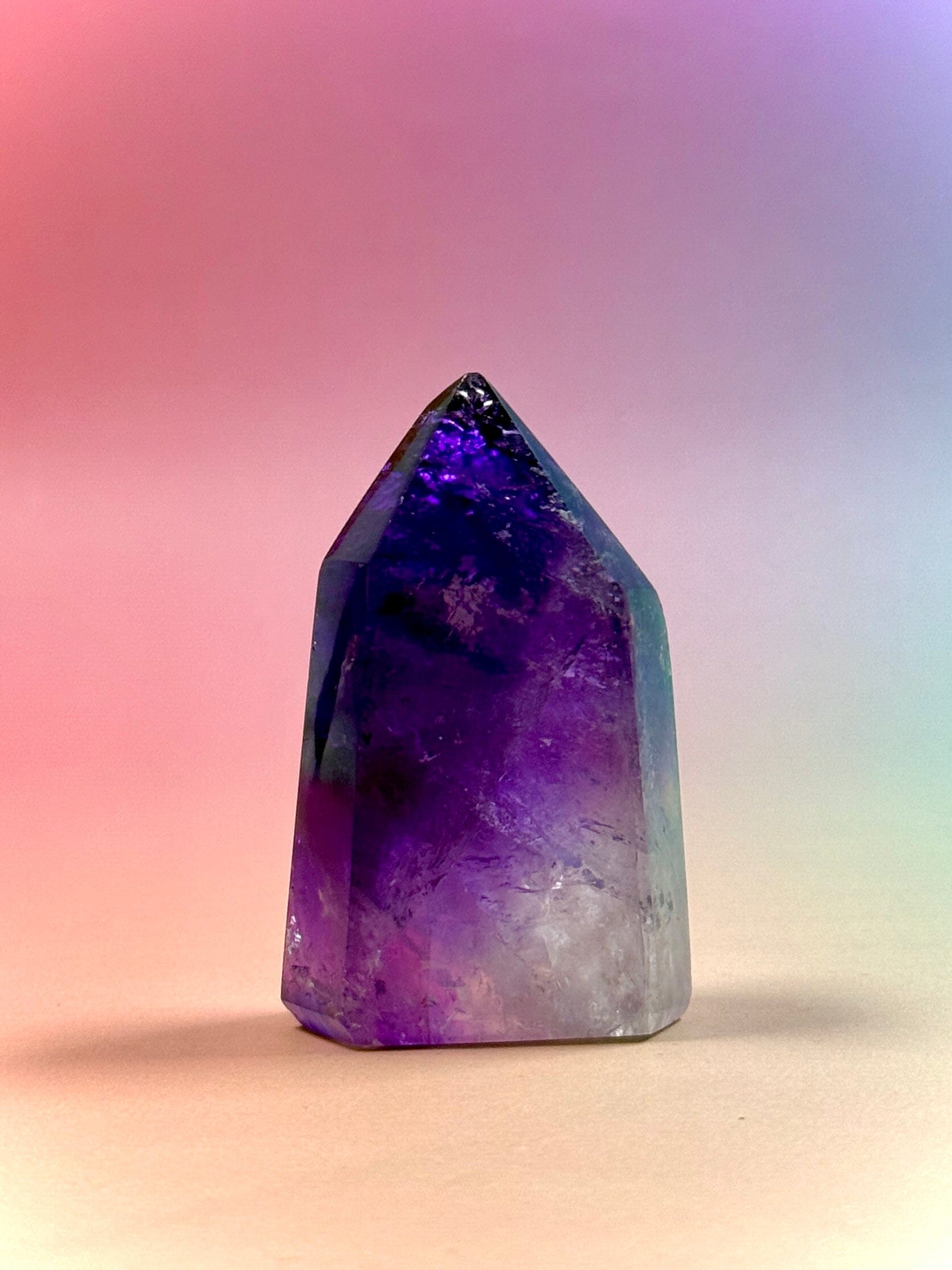 Ametyst er en sten af åndelighed og beskyttelse, kendt for sine evner til at stille sindet og inspirere til en forbedret meditativ tilstand. Dens høje frekvens renser auraen for enhver negativ energi og skaber et beskyttende lys omkring kroppen. Ametyst kan bruges som en drømmesten for at hjælpe med at sove bedre.