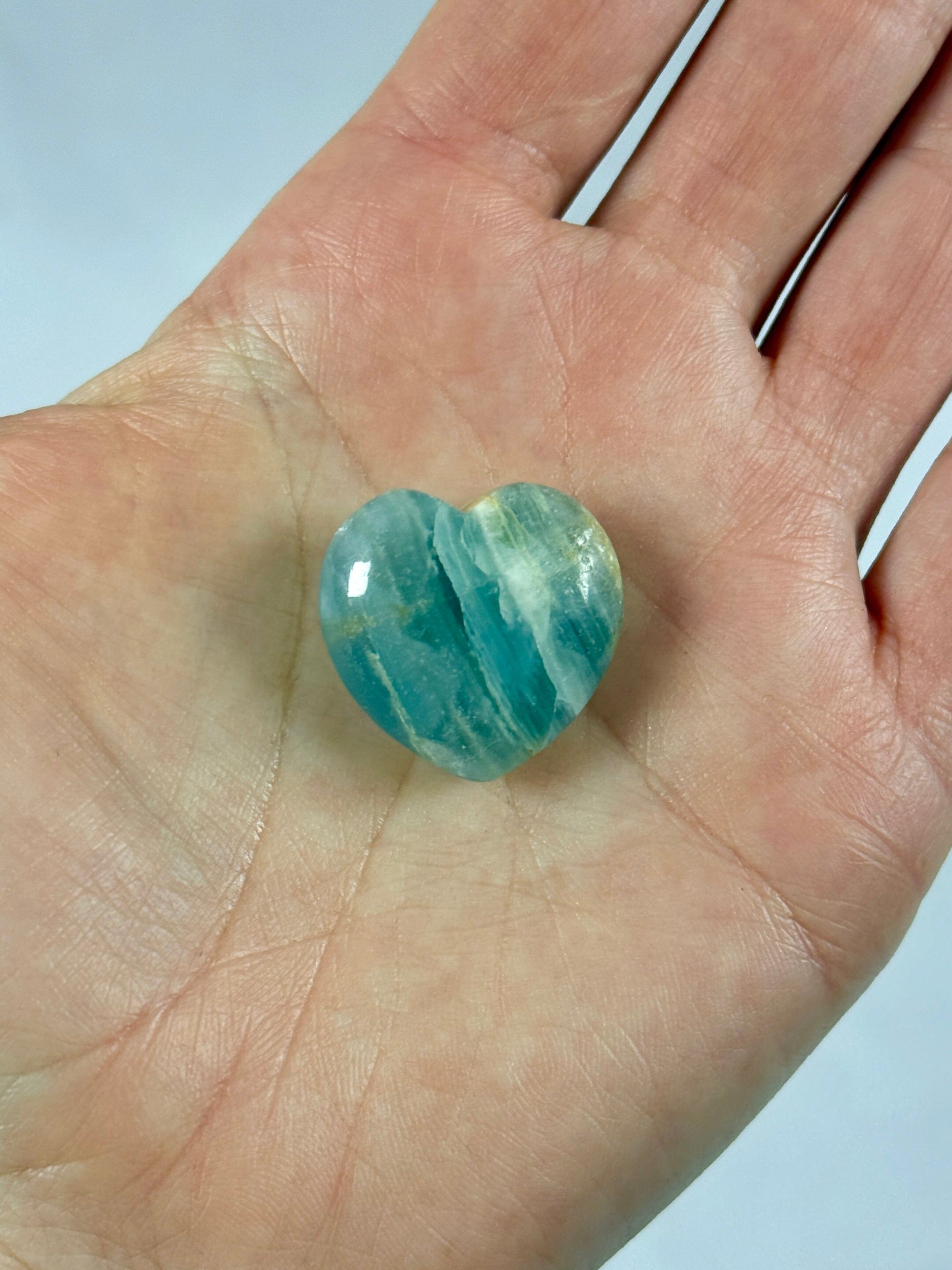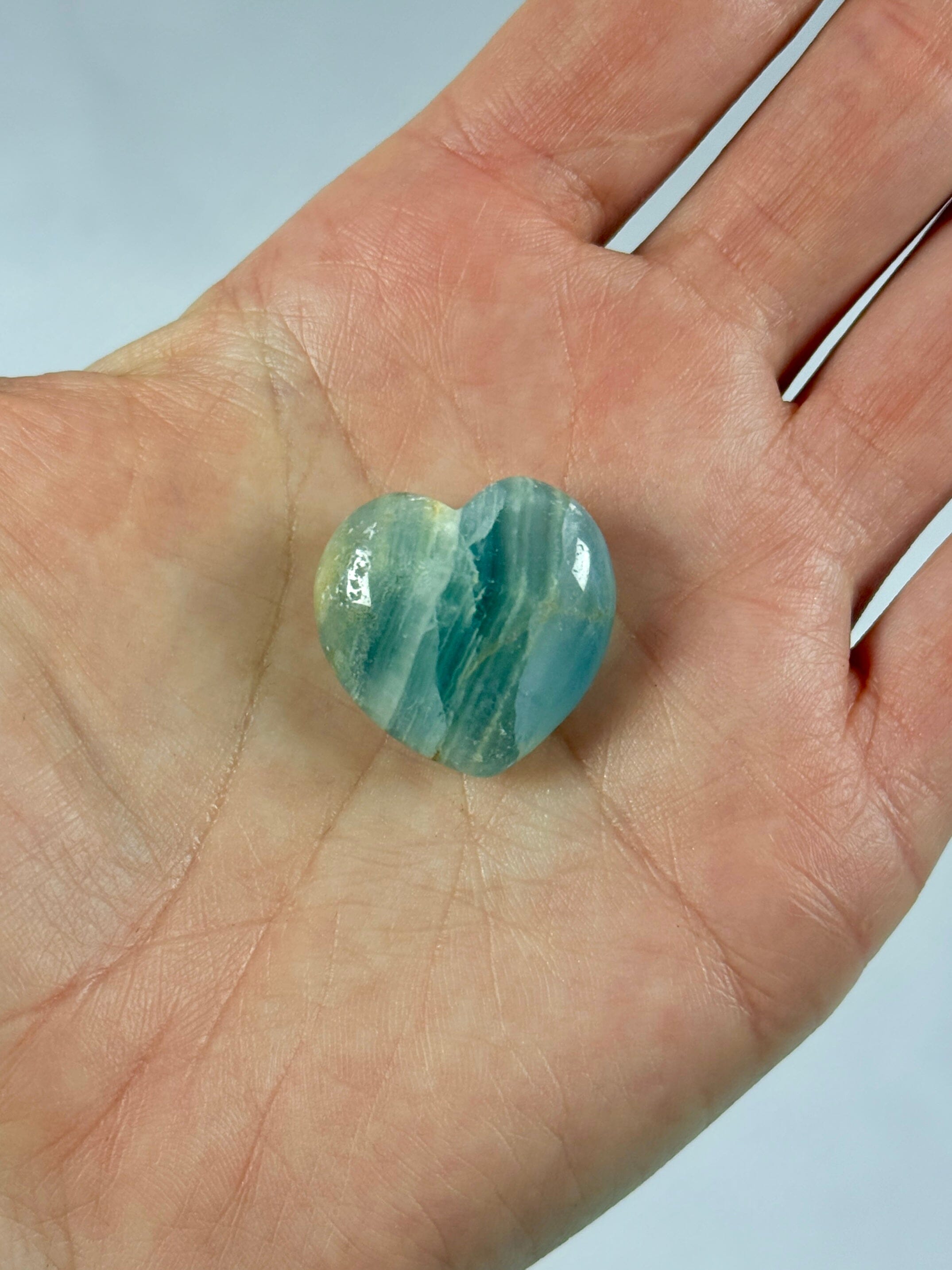 Aquatin Lemurian Blå Onyx krystal hjerte.