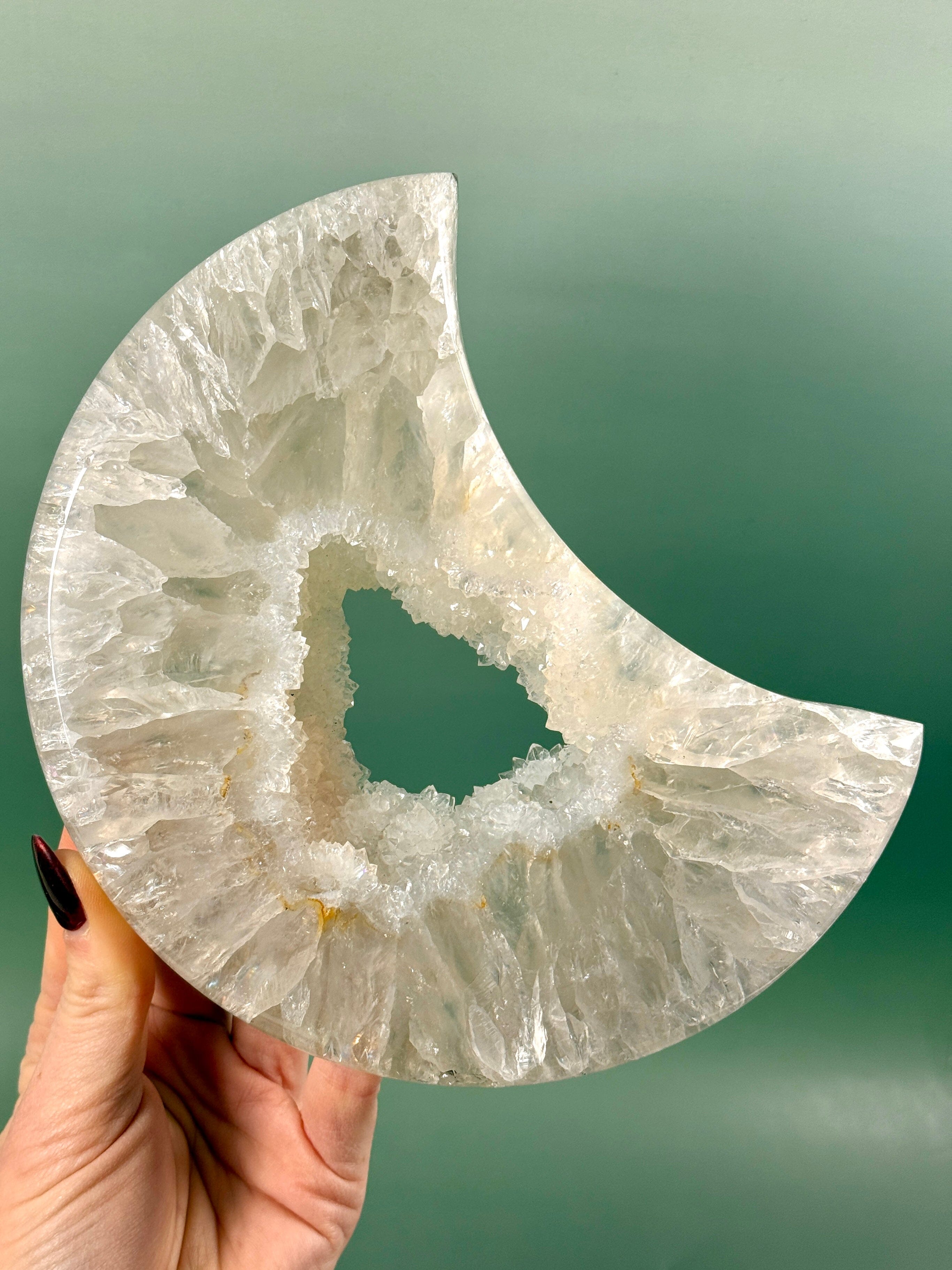 Druzy Agat Måne i ekstra høj kvalitet fra Brasilien. Denne fascinerende og glitrende krystal, repræsenterer den guddommelige skønhed i Moder Jord.