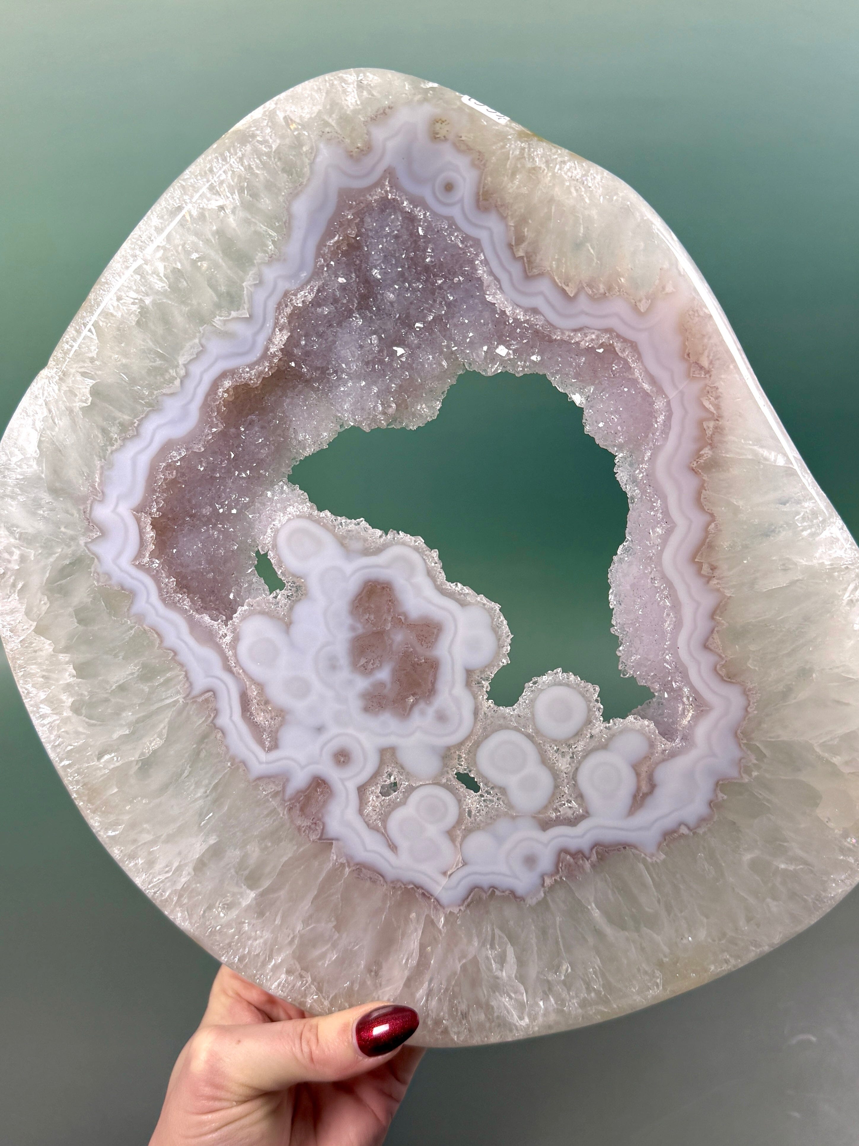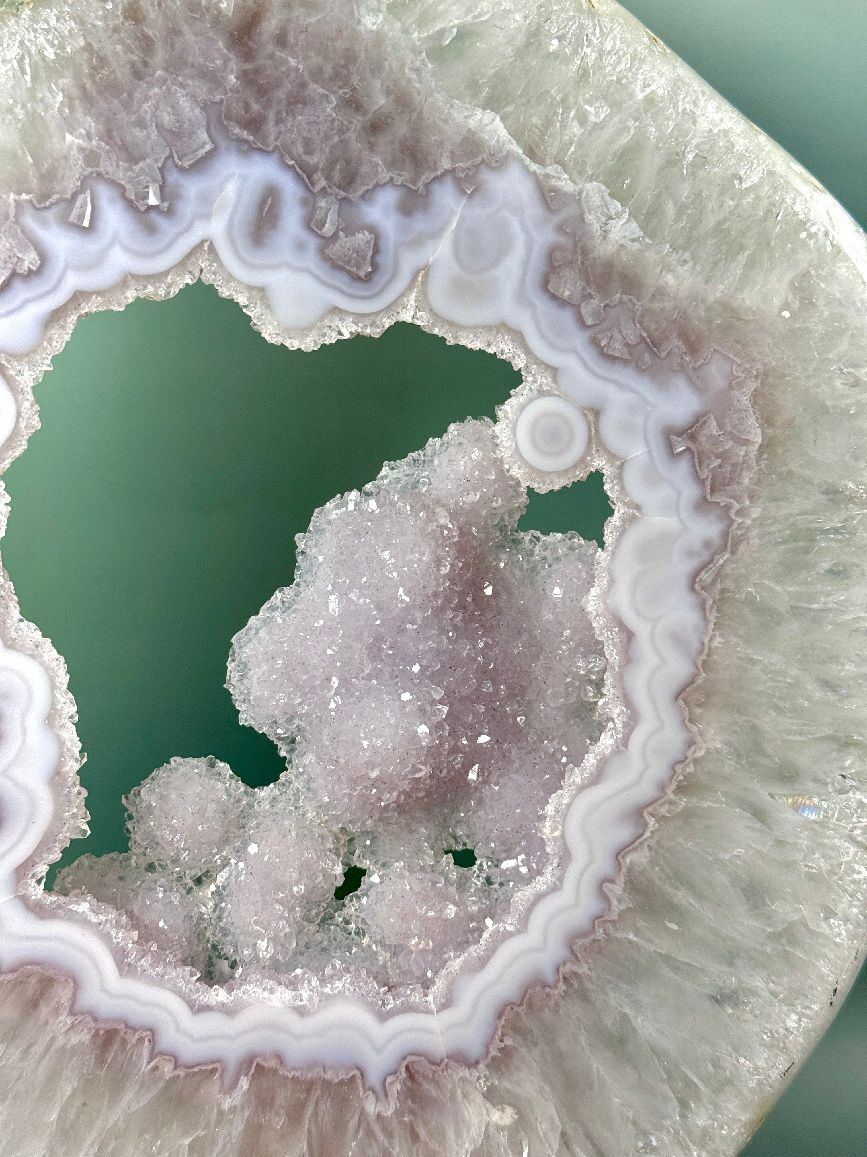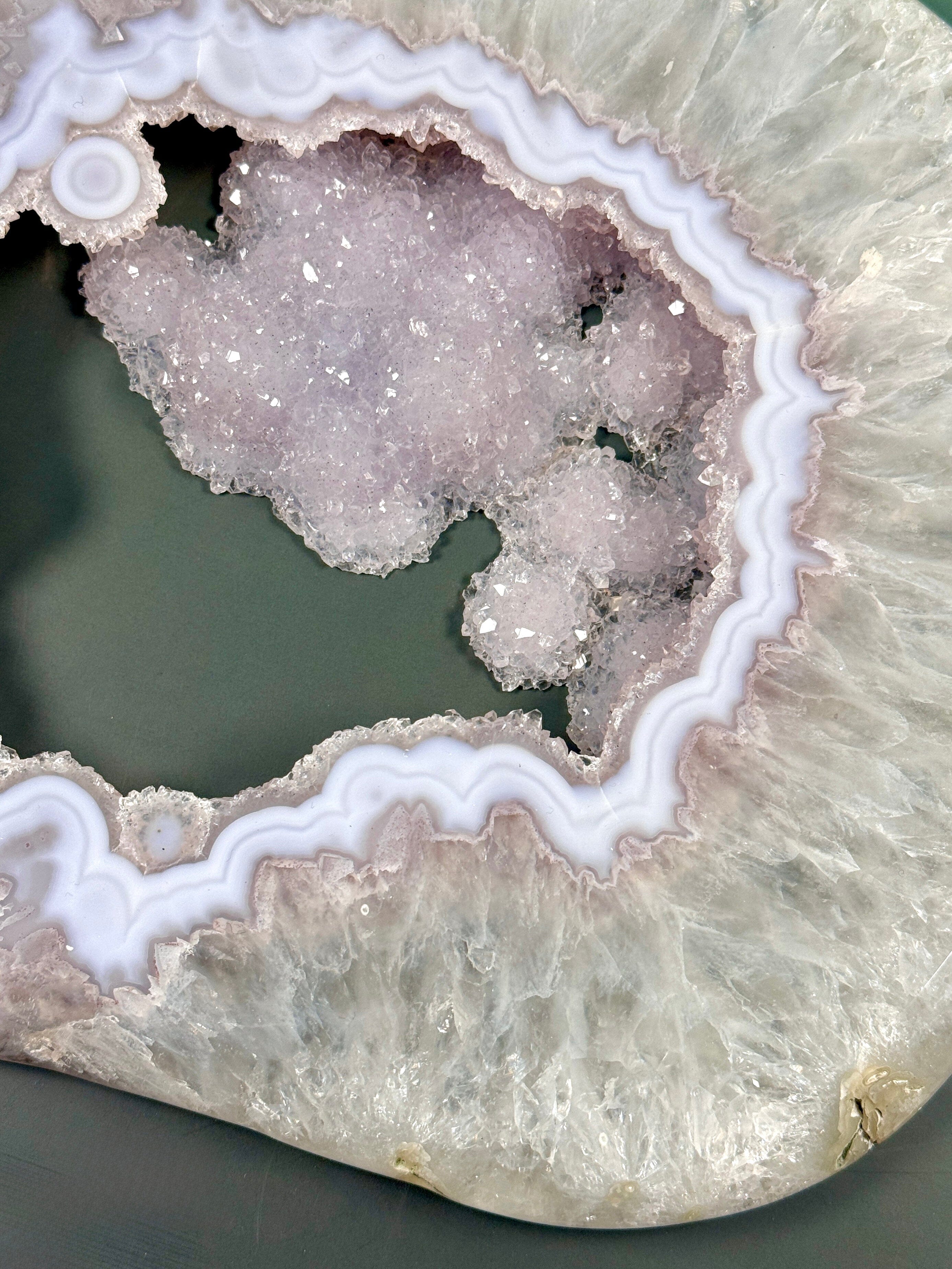 Druzy Agat plade i høj kvalitet fra Brasilien. Denne fascinerende og glitrende krystal, repræsenterer den guddommelige skønhed i Moder Jord.