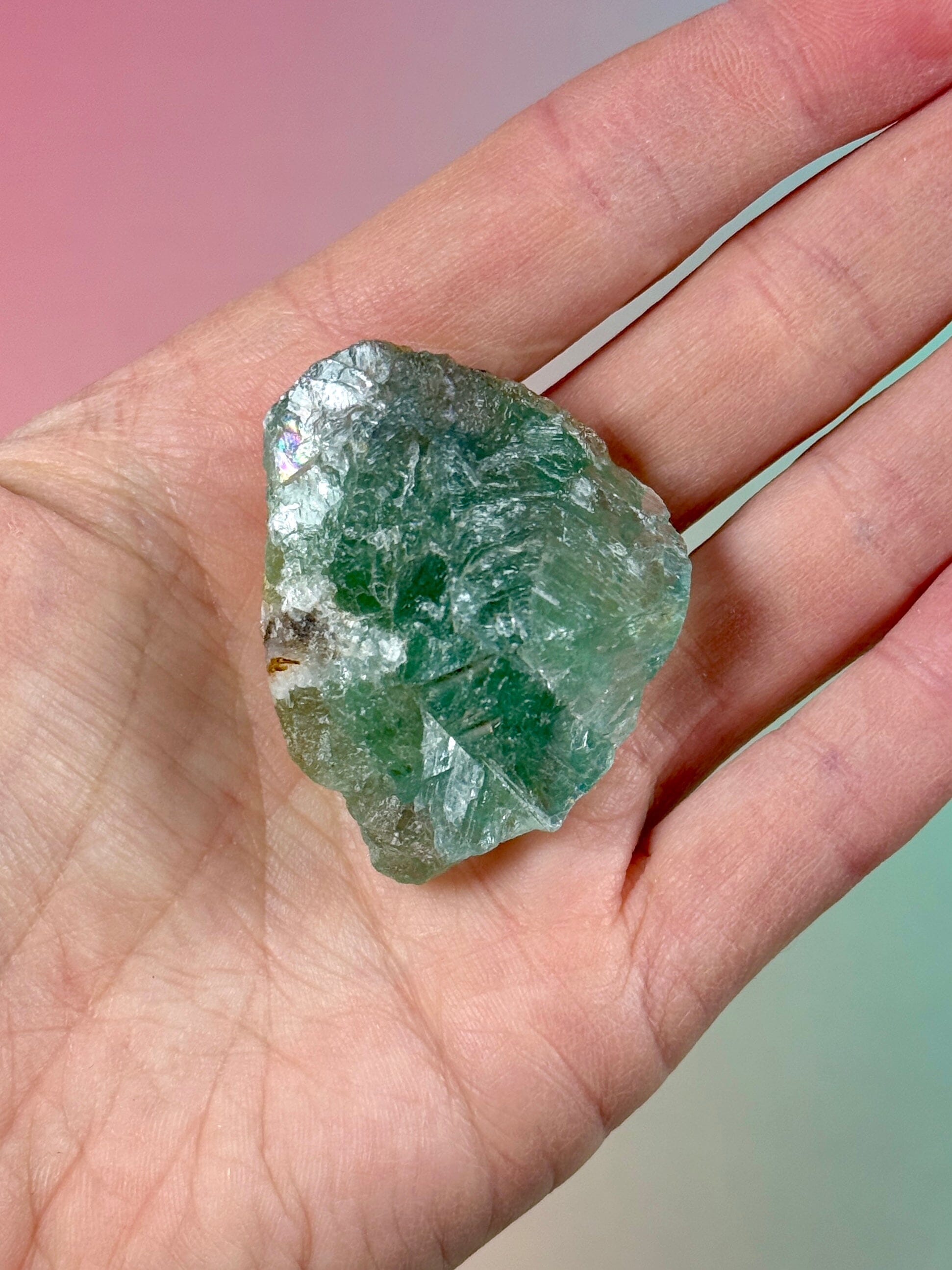 Rå Regnbue Fluorit med smukke og dybe farver.