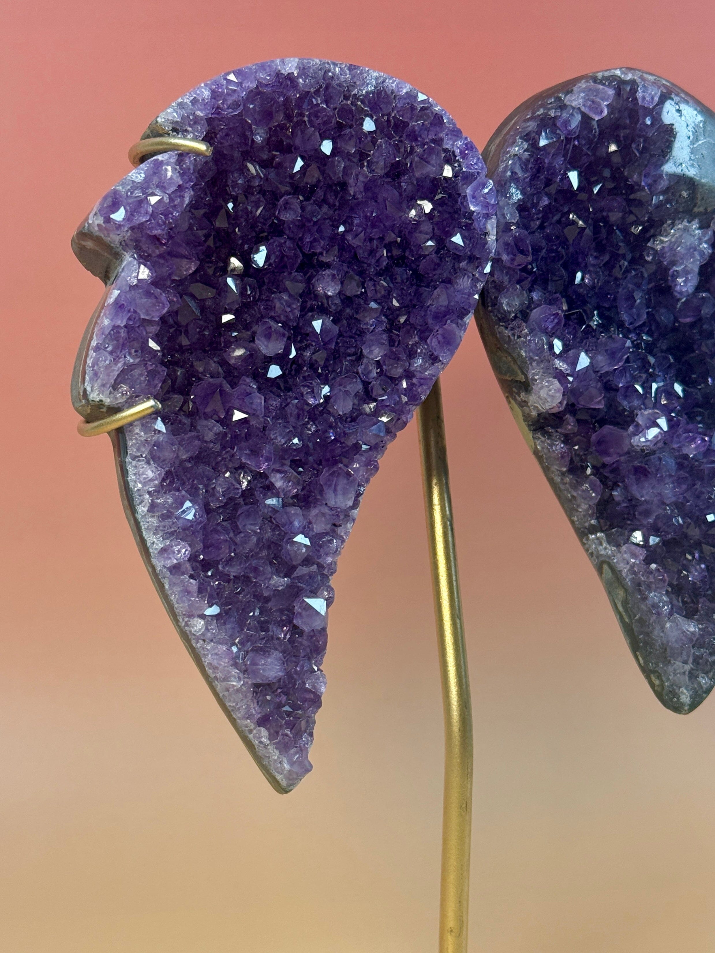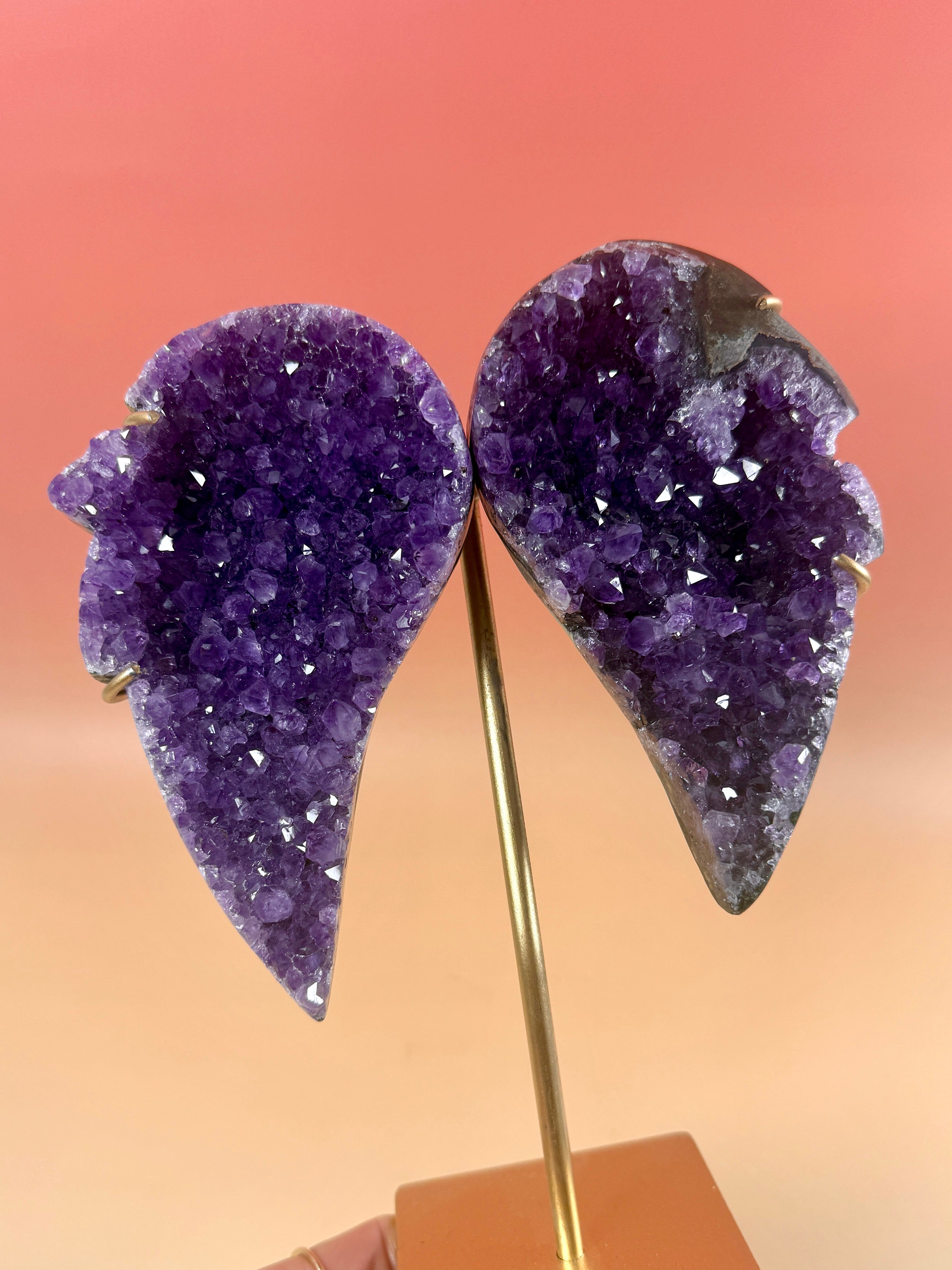 Sammen med Ametyst, en sten kendt for klarhed, intuition og spirituel beskyttelse, bliver disse vinger en påmindelse om at stole på din indre visdom og omfavne din rejse mod vækst og opvågning.