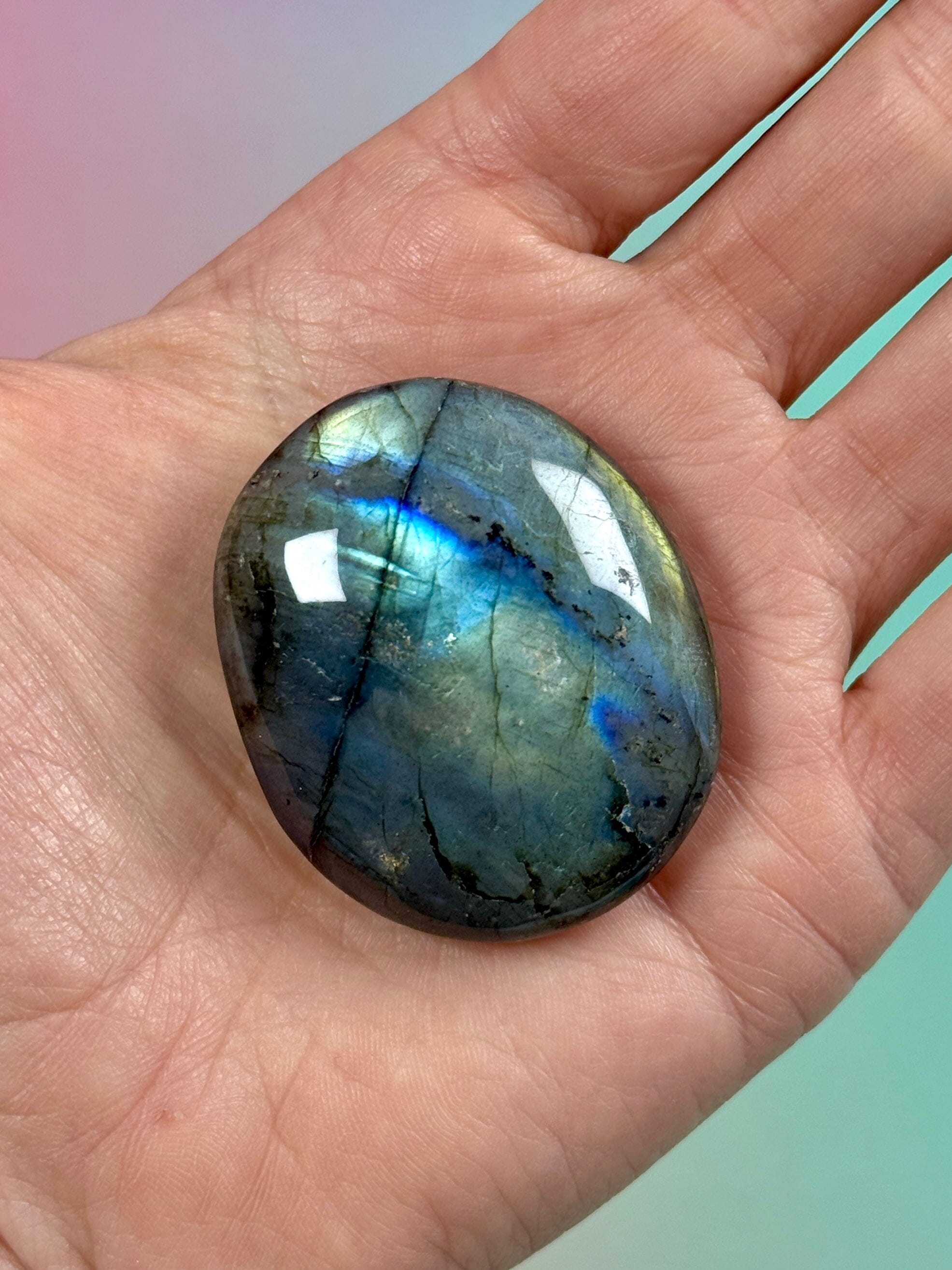 Denne sten støtter dig gennem forandring, giver styrke, udholdenhed og jordforbindelse til dine åndelige energier. Den fremmer psykiske evner, fjerner frygt og usikkerhed og styrker troen på dig selv og tilliden til universet. Labradorit stimulerer fantasien, beroliger et overaktivt sind og inspirerer til entusiasme og nye idéer.