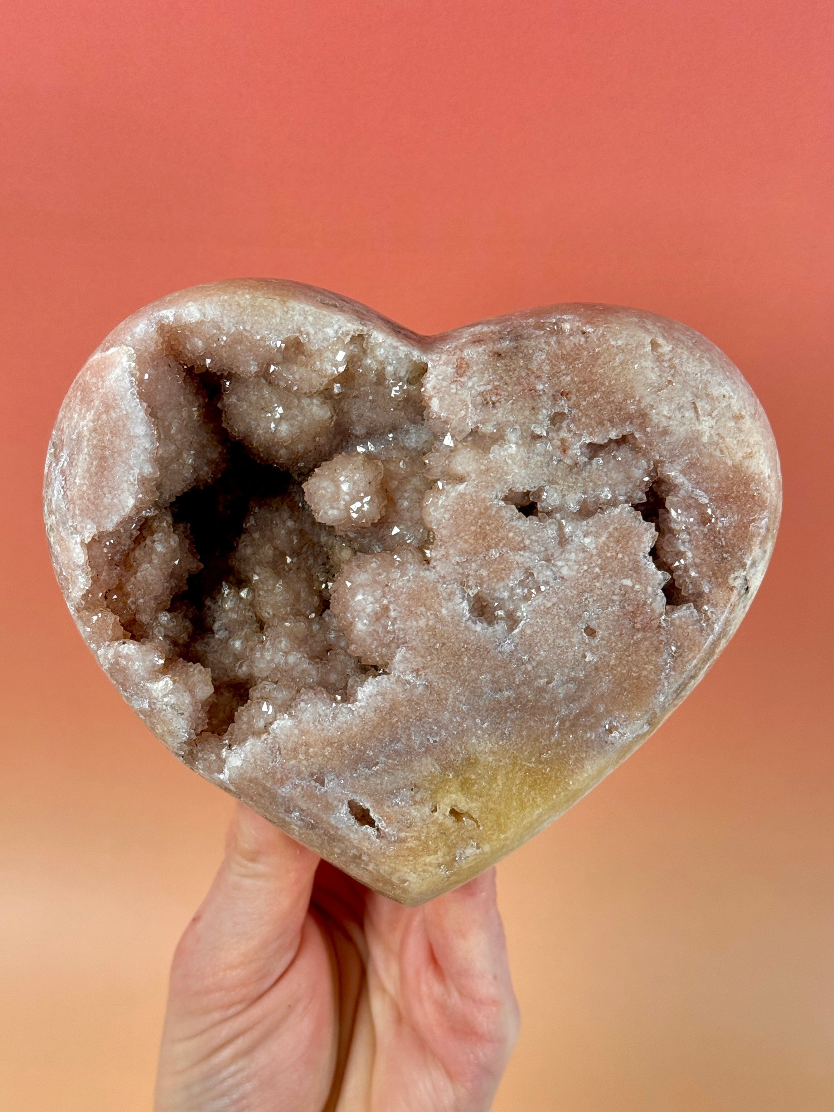 Sjældent og smukt Pink Ametyst Hjerte med holder i eksklusiv kvalitet. Et sandt samlerobjekt, perfekt til ethvert rum, der fortjener fortryllende og kærlige energier.