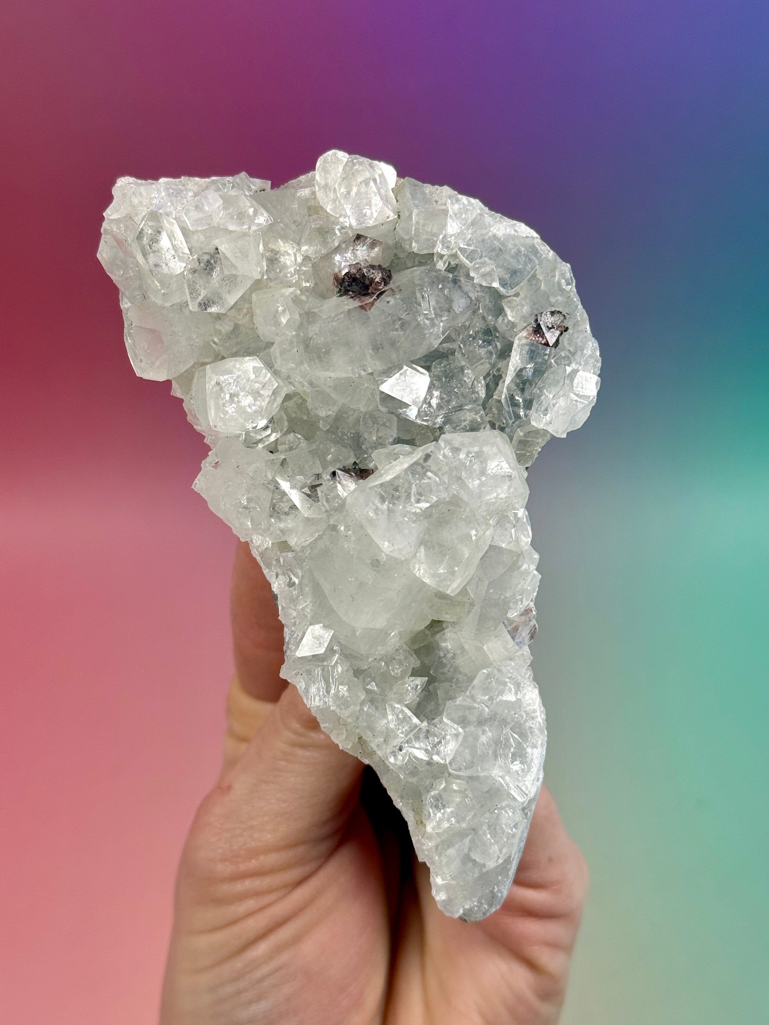 Fra det hellige område i Nordindien kommer denne lysende Apophyllit – en krystal af ren spirituel klarhed.