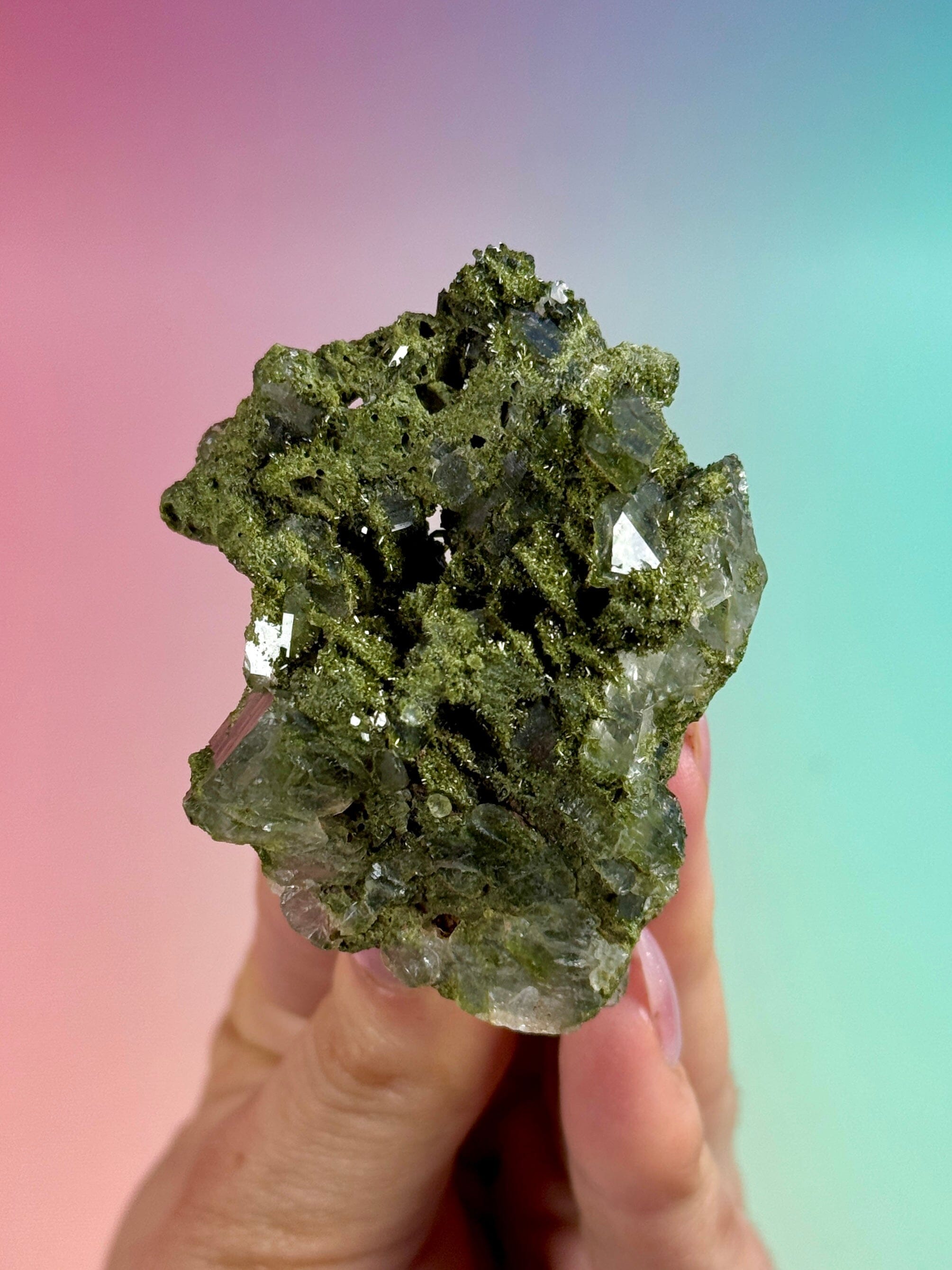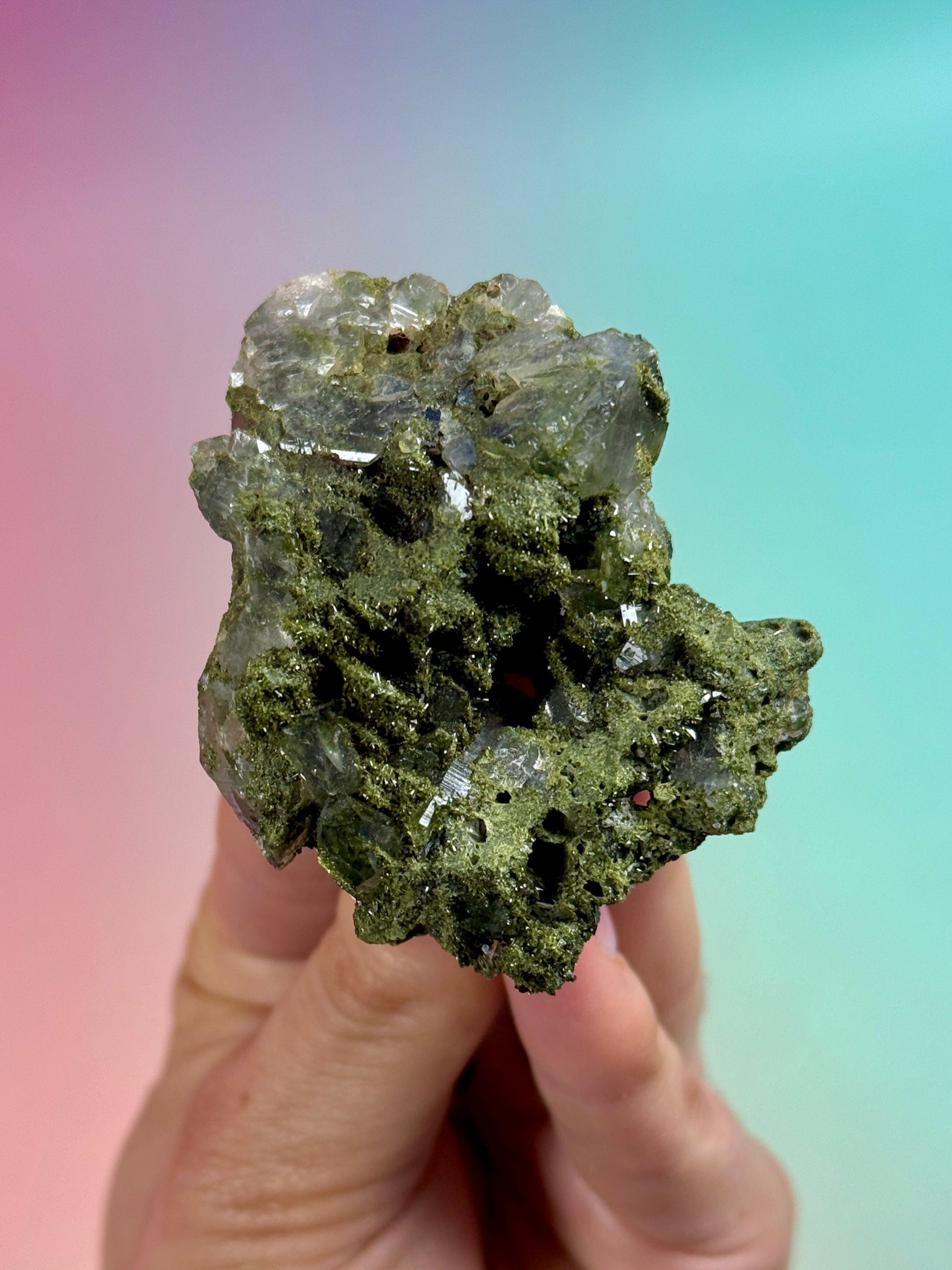 Like a hidden glade deep within an ancient woodland, Fairy Forest Epidote with Quartz captures the quiet magic of nature in perfect harmony. These high-quality specimens from the mystical mountains of Hakkâri shimmer with the deep, mossy greens of Epidote intertwined with the radiant light of Quartz — a natural fusion that feels both grounding and ethereal.