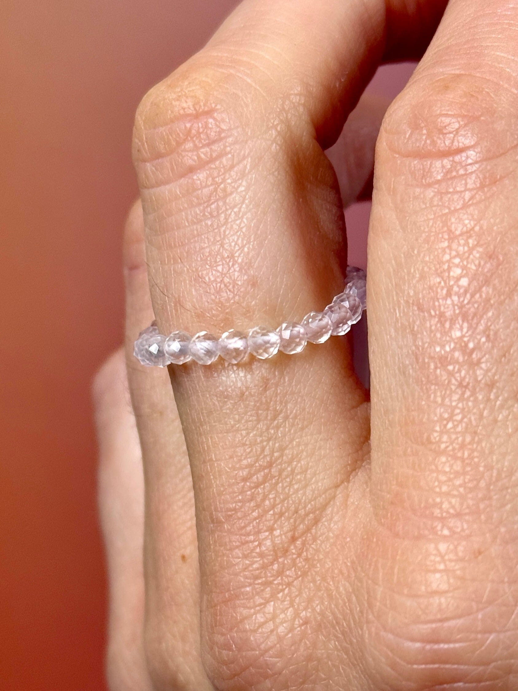 ROSE QUARTZ - CRYSTAL STRETCH RING WITH FACETED BEADS